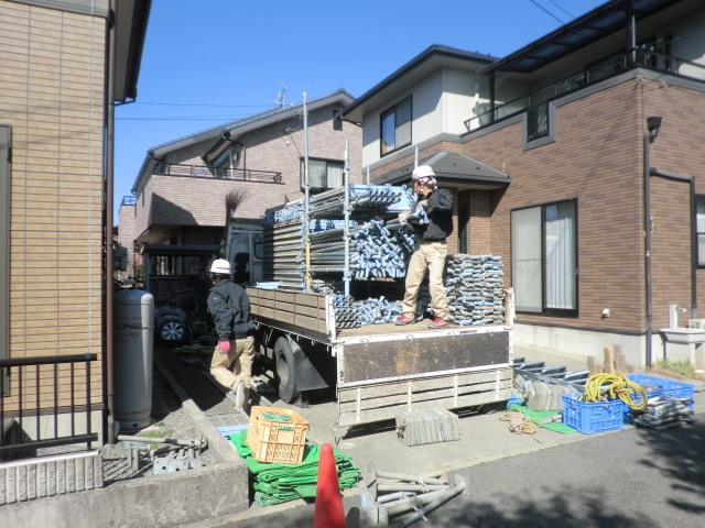 本日、H様邸は高圧洗浄を行いました。午前中は強風にあおられ 近隣の皆様にご迷惑のかからないよう、気を使いながらの洗浄。 CIMG1119  CIMG1126     雨漏りの原因と思われ、疑いのある箇所は、避けながら洗浄 しました。 現場担当は柴山君。 さて、高崎でもK様邸、I様邸、本日足場の仮設工事を行いました。 CIMG1112 工事期間中は細心の注意を払い工事を行います。 何かとご迷惑をお掛けしますが、よろしくお願い致します。<m(__)m> また、本日はセミナーのチラシを、高崎の上中居町、下中居町、片岡町 にポスティングしました。 皆様、お気軽にお越しくださいね。 明日は風が吹きませんように・・・・ 事務&雑用係の金井でした。