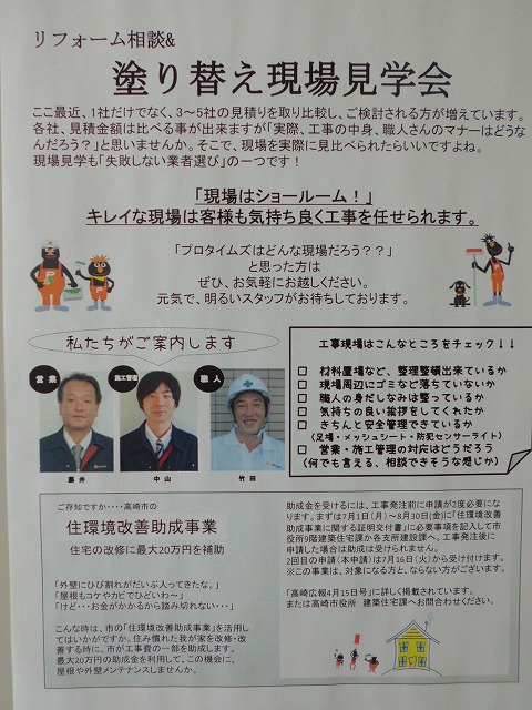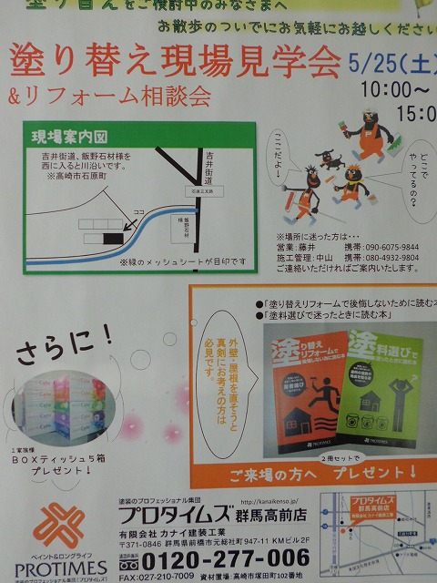 5月25日(土)高崎市石原町 ただ今着工中の現場にて、 塗り替え現場見学会を開催致します。 お施主様のご協力があるからこそできる貴重な「現場見学」です。