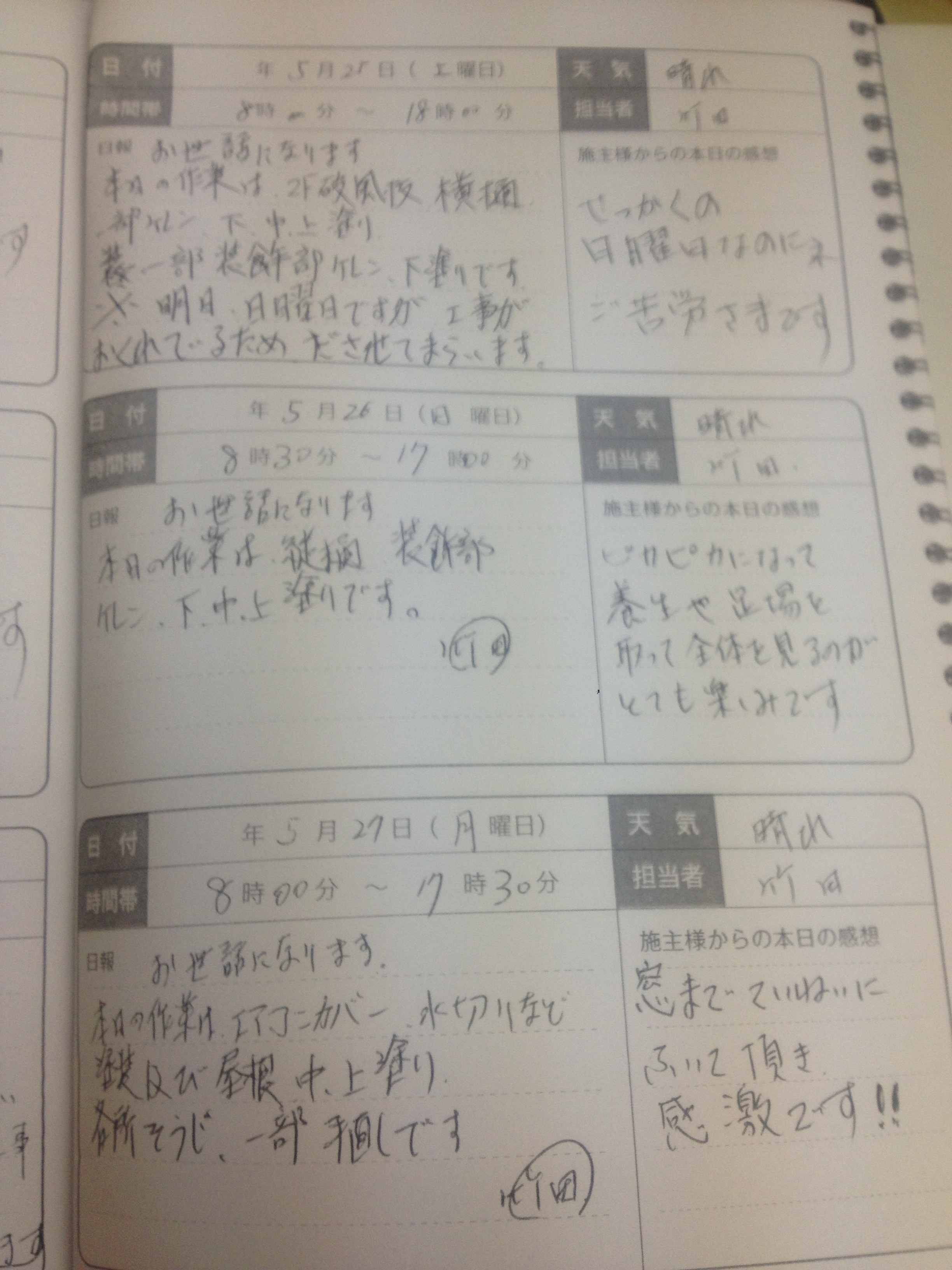お客様からも、毎日の工事の様子が分かると大好評(*^_^*)