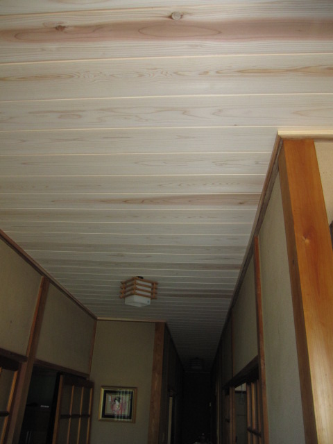 縁側、廊下天井を張替、木のぬくもりが良いですね~