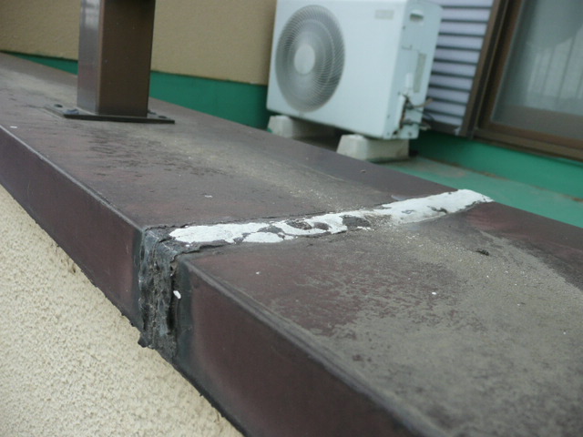 笠木コーキング部分の劣化(ここから水が浸入してしまいます)(+o+)