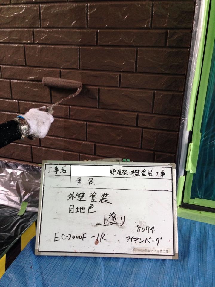 そしてもう一度、外壁色を塗布。上塗材4回目塗布。