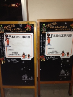 工事内容をお知らせするボードもクリスマスバージョンにしてみました。♪♪♪
