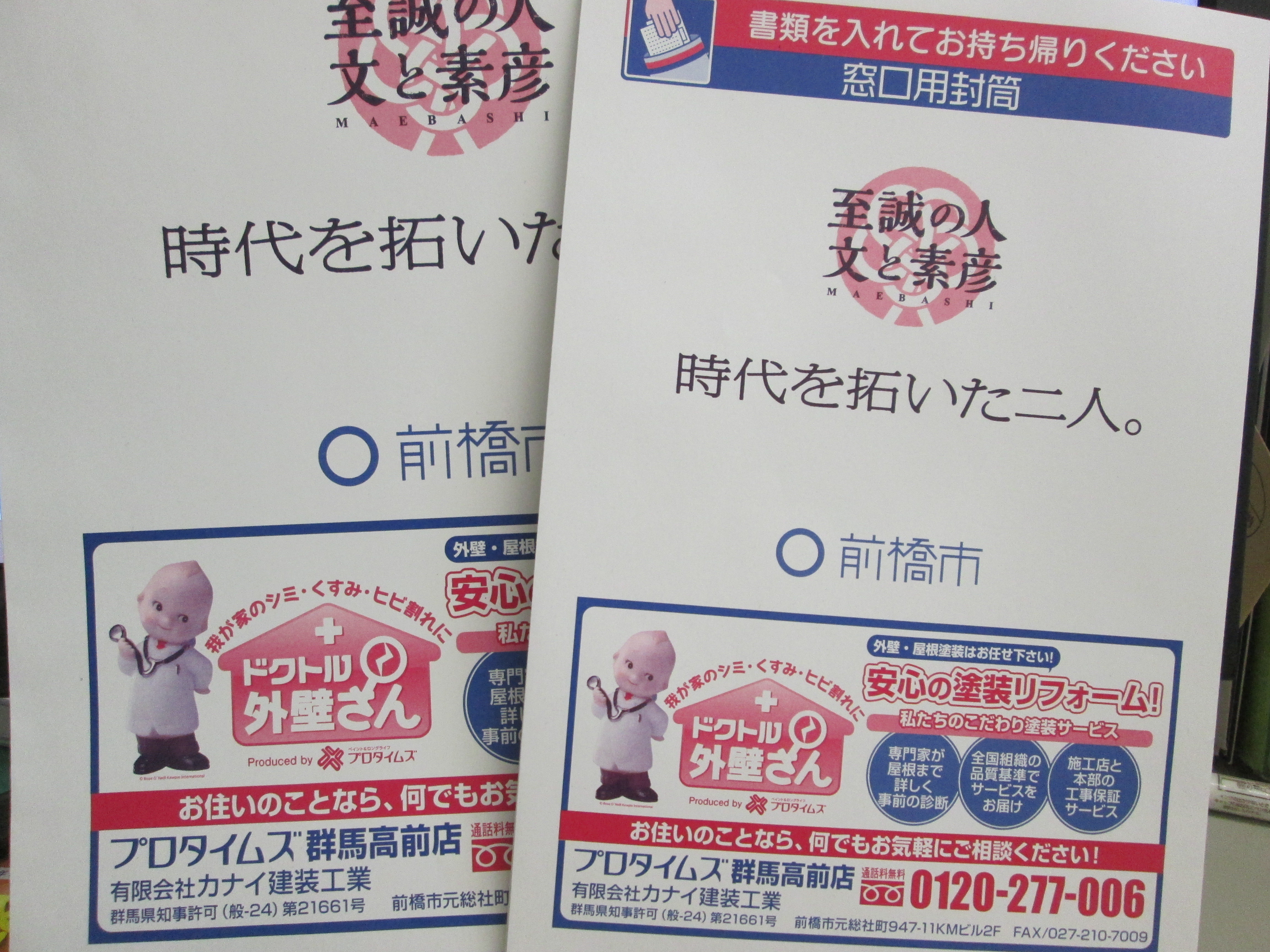 前橋市役所用の書類を持ち帰る時の封筒ができました。