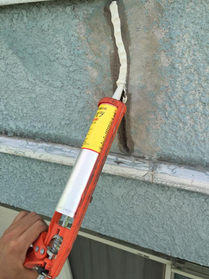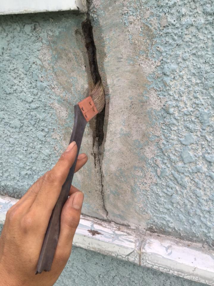 Vカット処理後、コーキングを密着させるためのプライマーを塗布