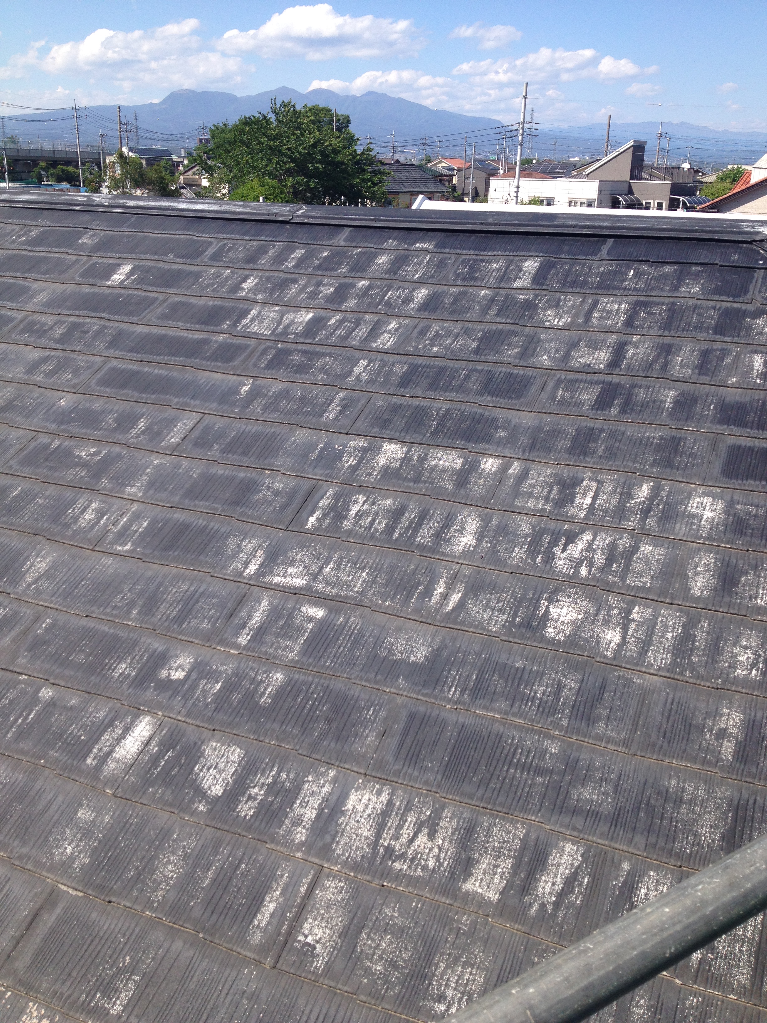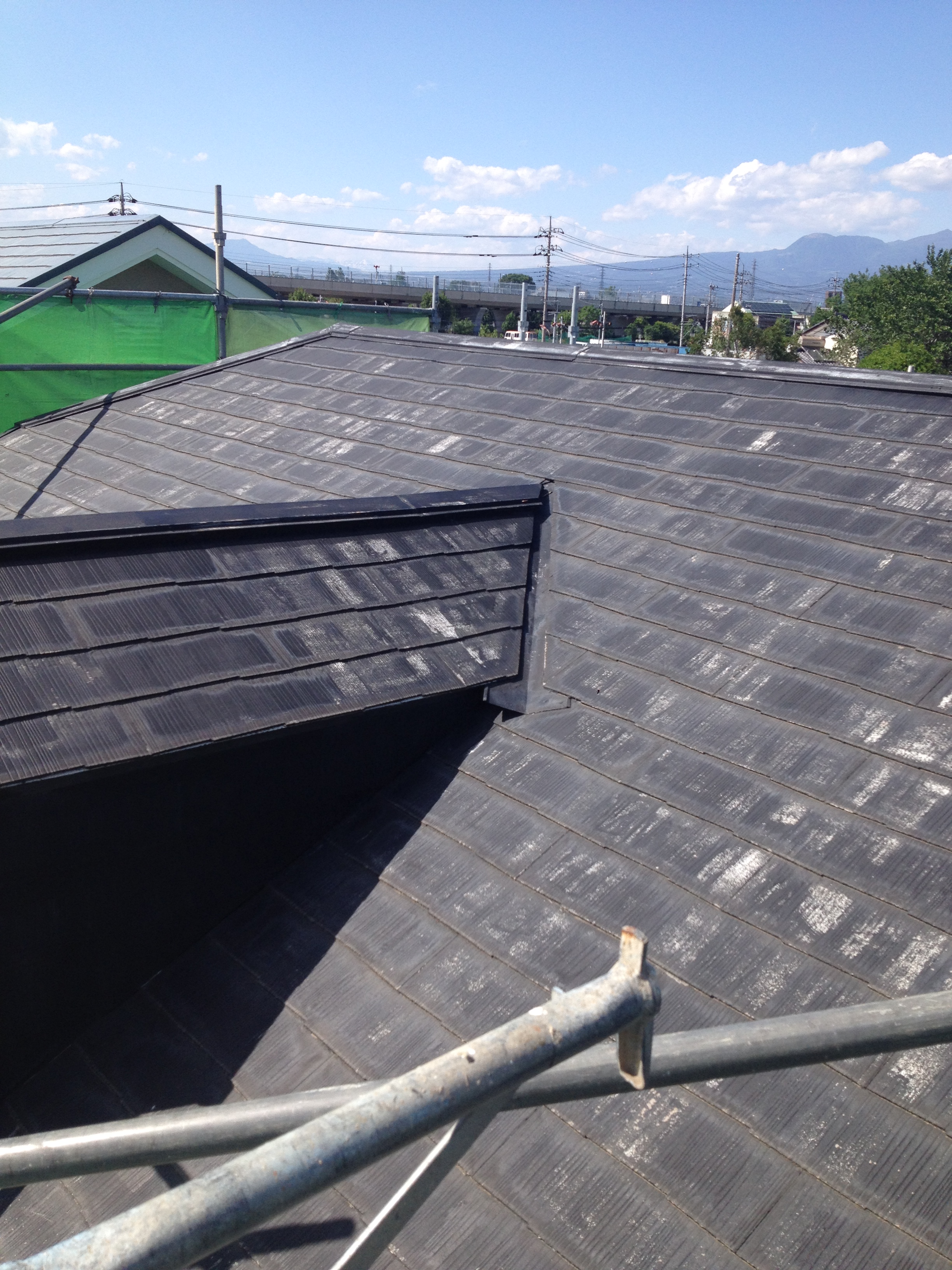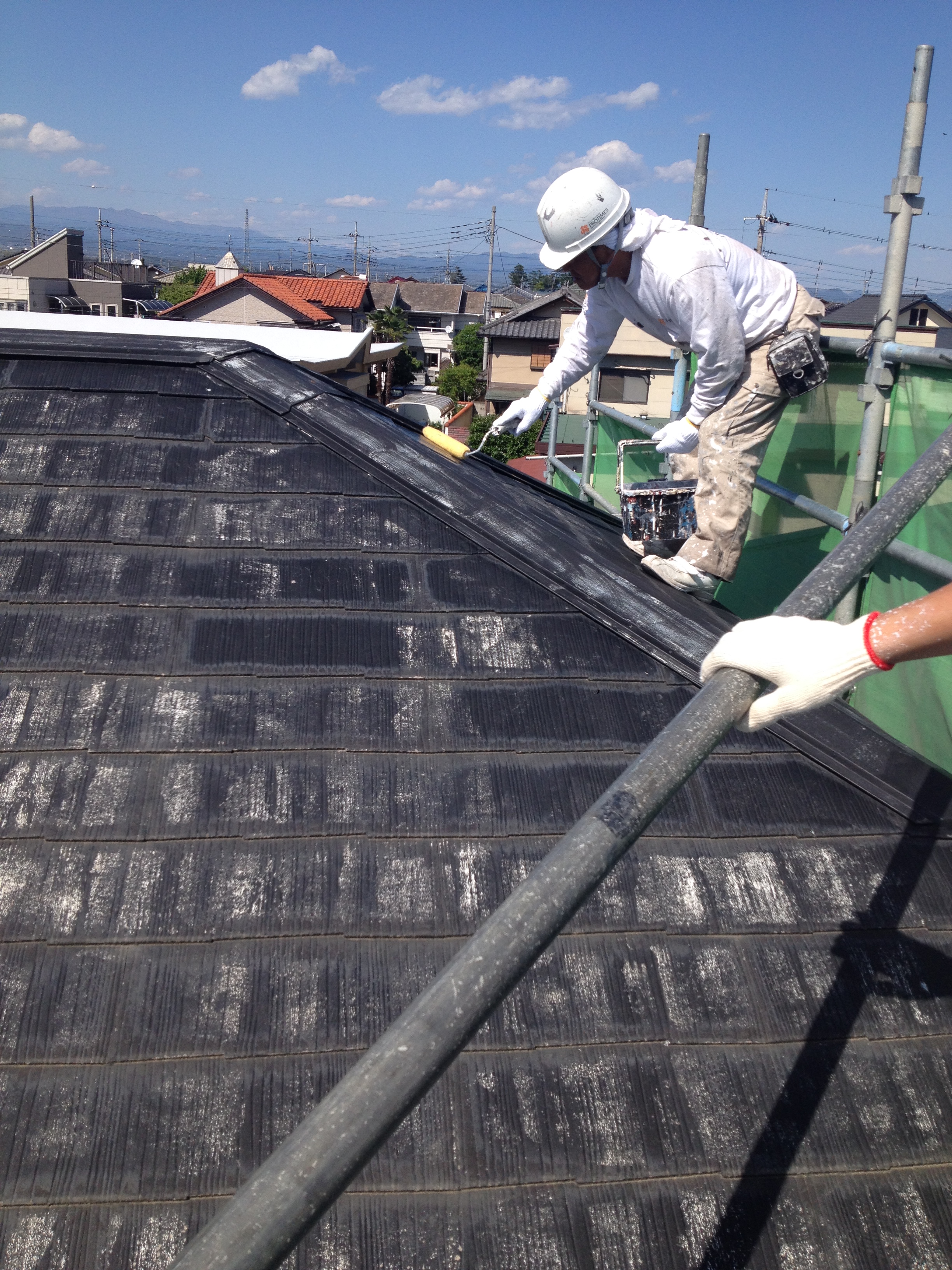 先日は外壁の下塗りが終わり、屋根の下塗り作業を行っていました。