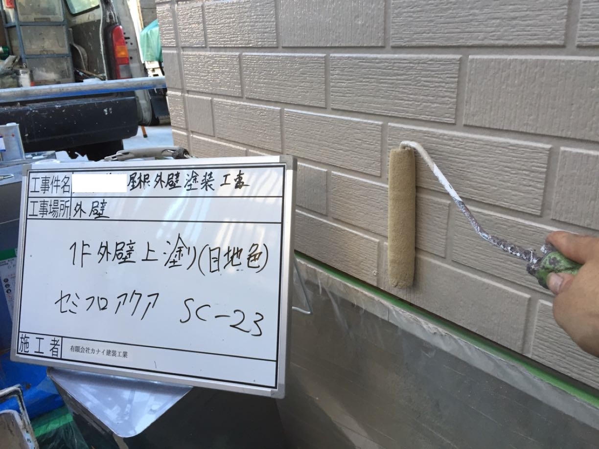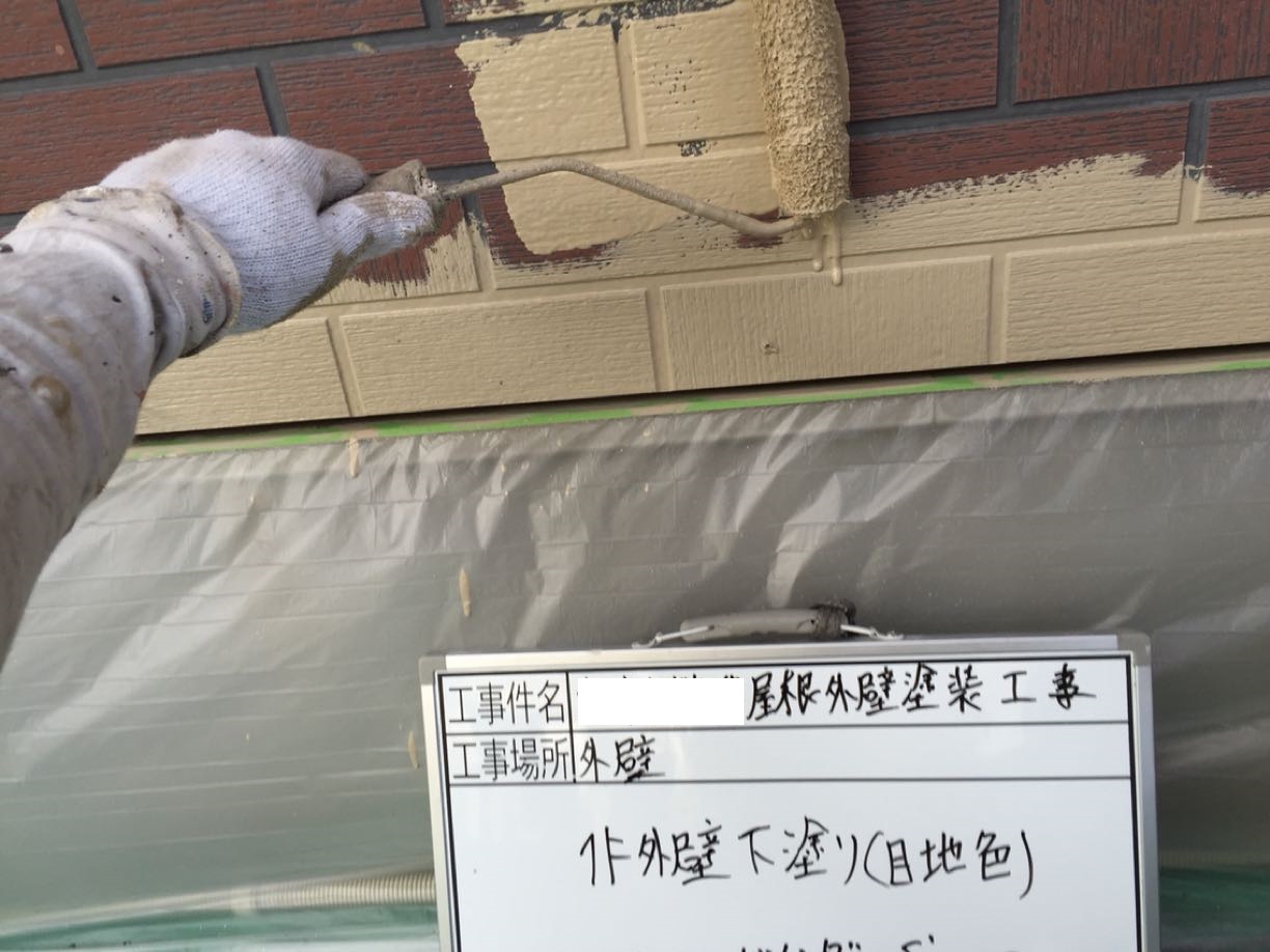 下塗り材を塗布しました(塗料の吸い込みムラを無くしたり外壁と上塗材を密着させる役割をします)