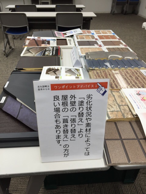 豊富なカタログや、外壁・屋根サンプルを見ながら