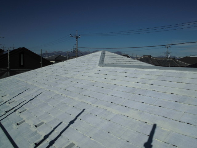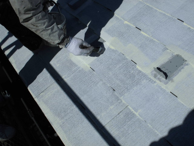 屋根の下塗り2回目の作業が行われていました。