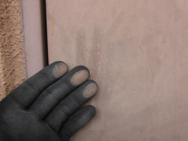 塗膜が次第に劣化し元の色相よりも白くなり、塗膜が粉状になって劣化していく現象です。