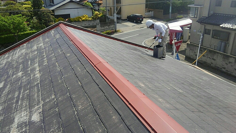 (塗料の吸い込みムラを無くし上塗材を密着させる為のシーラーを塗布)