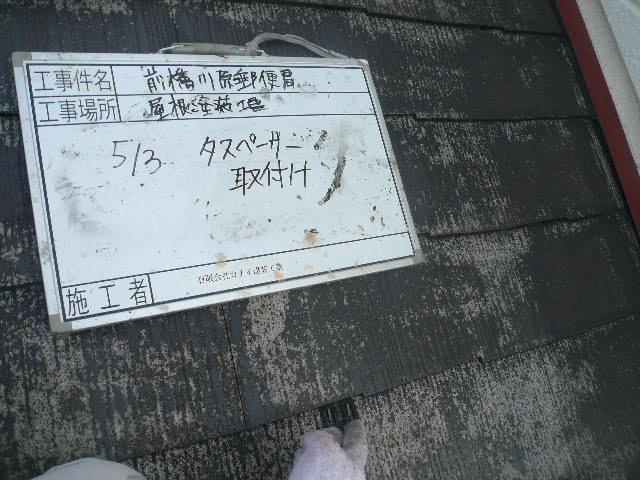 ④瓦と瓦の重なり部分にタスペーサーという縁切り部材を挿入します。