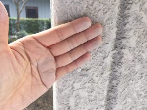 塗膜が剥がれた写真を良く見ると穴だらけの素地が確認できます。塗膜劣化が進み、剥離してしまうと雨水や湿気を大変吸収しやすいのがALC外壁です。