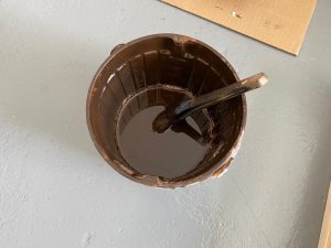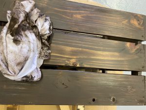 塗った後、もう少しアンティークな感じを出したかったのでミルクペイントのアンティークメディウム(ホームセンターで買えます)を使用しました。