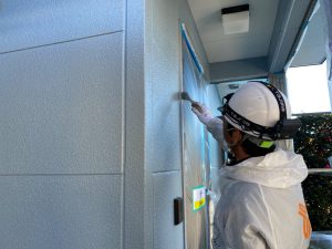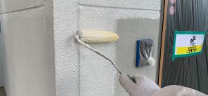 下塗材塗布後、上塗り材を2回塗布しました。
