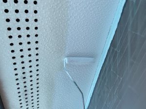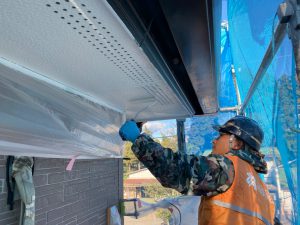只今渋川市では北橘町小室、村上、中郷、半田、上郷、行幸田にて住宅塗り替え工事着工中です。 渋川市北橘町小室の現場では、軒天の塗装中。