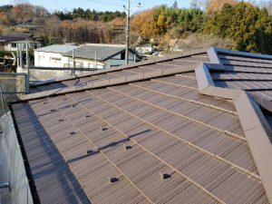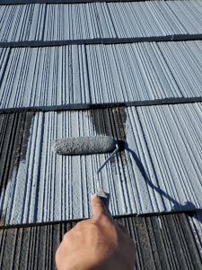 経年劣化が進むと瓦が塗料を吸いこんでしまい、塗膜厚の確保ができないので2回下塗り材を塗布します。