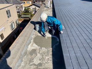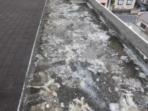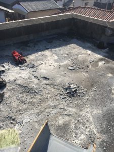 防水工事では剥がれたコンクリートを撤去し補修工事を行った後