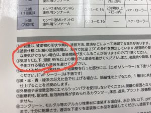 (各メーカー塗料の仕様書:気温5℃以下、湿度85%以上の環境では塗装を避けてください。と記載されている)