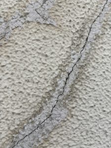 既存外壁は凹凸のある外壁ですが、ひび割れを補修した部分だけ