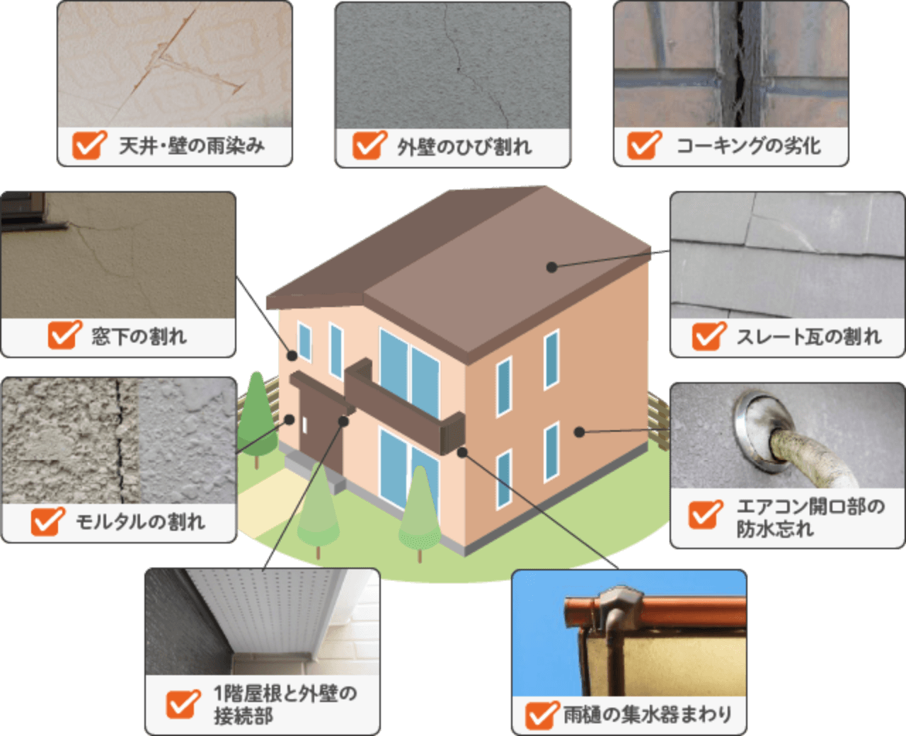 割れ・剥がれ・痩せが見られる場合、防水性が大きく低下している危険サイン