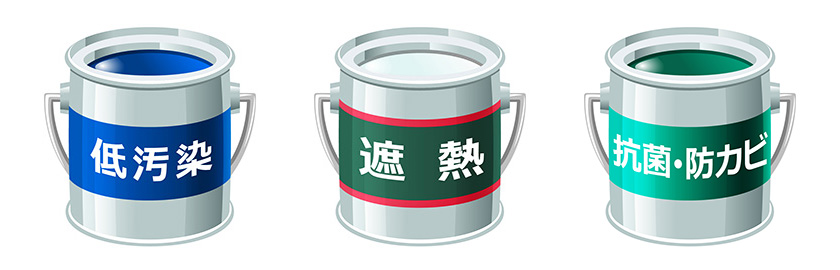 最近では、耐久性以外にも様々な機能を持つ塗料が登場しています。例えば、汚れが付着しにくい「低汚染塗料」、夏の室温上昇を抑える「遮熱塗料」、湿気の多い場所に適した「防カビ塗料」などです。