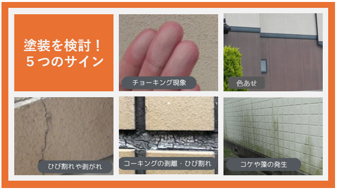 以下のような症状が見られたら、塗り替えを検討するタイミングかもしれません。