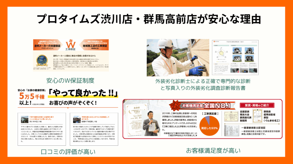 渋川市・吉岡町・前橋市で外壁塗装や屋根塗装を手がける、プロタイムズ渋川店・群馬高前店(有限会社カナイ建装工業)です。