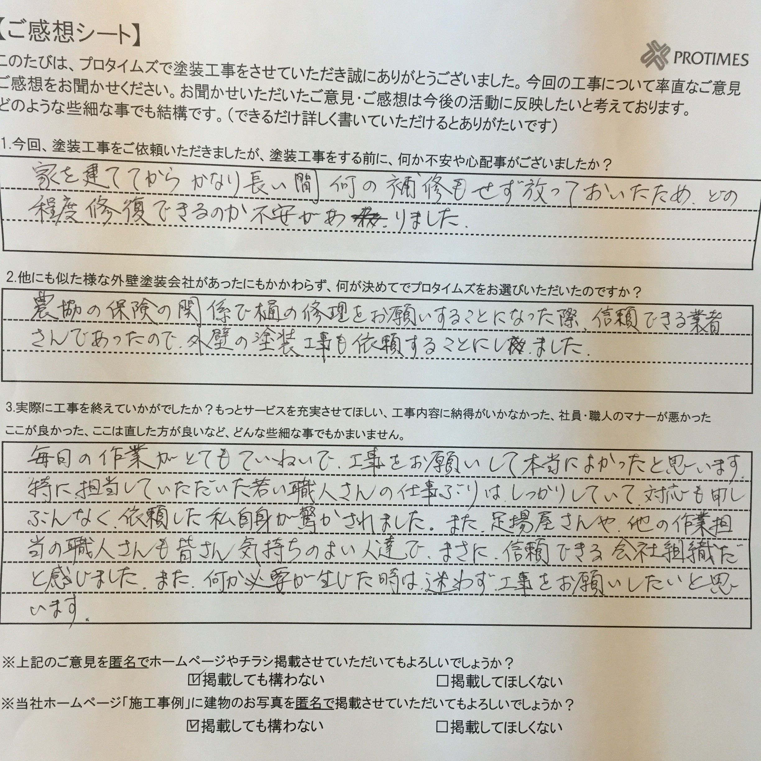 Q:他にも似たような業者があったにもかかわらず、何が決め手でプロタイムズをお選びいただいたのですか?
