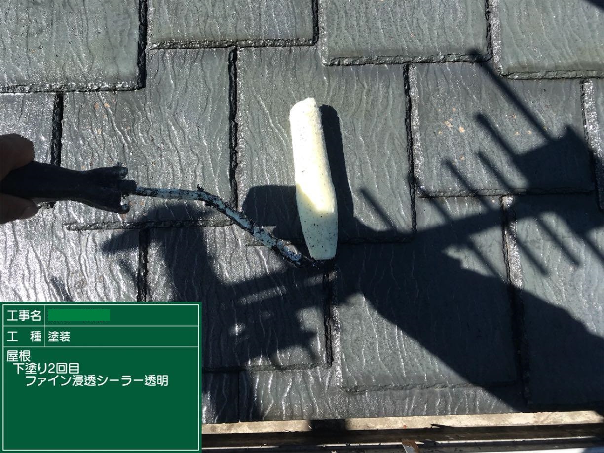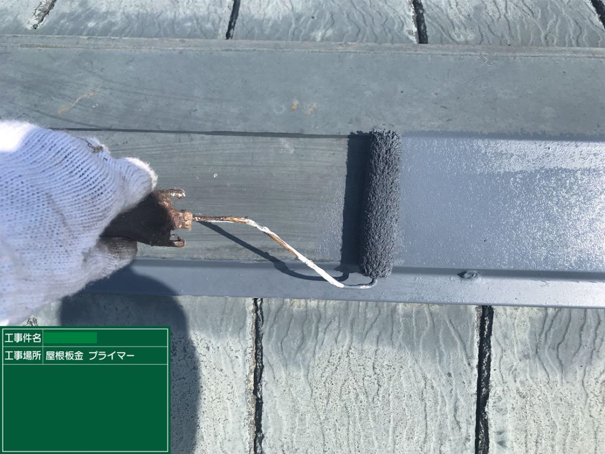 屋根棟板金部は錆止めを塗布、スレート瓦の劣化も激しく下塗り材を1回塗布しても吸い込み激しい状態でしたので、2回目を塗布。その後、上塗り材を2回塗布しました外壁はコーキングを打ち替え下塗り、上塗り2回塗装。雨樋は交換し、ベランダ床は防水シートを張り替えました。