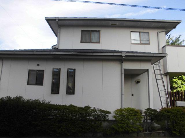 屋根棟板金部は錆止めを塗布、スレート瓦の劣化も激しく下塗り材を1回塗布しても吸い込み激しい状態でしたので、2回目を塗布。その後、上塗り材を2回塗布しました外壁はコーキングを打ち替え下塗り、上塗り2回塗装。雨樋は交換し、ベランダ床は防水シートを張り替えました。
