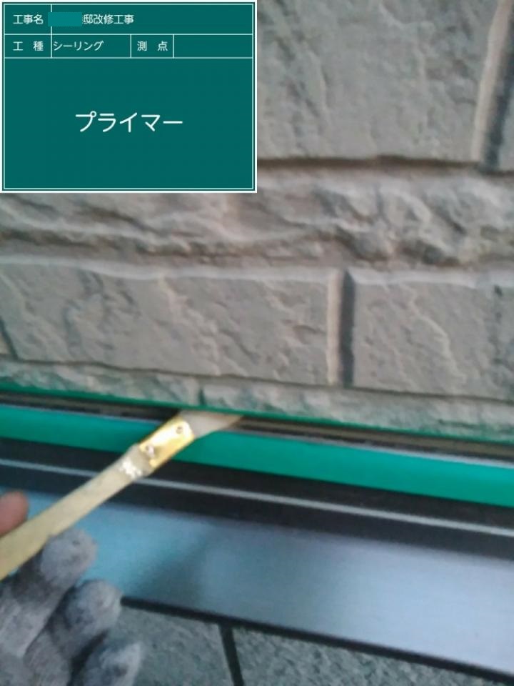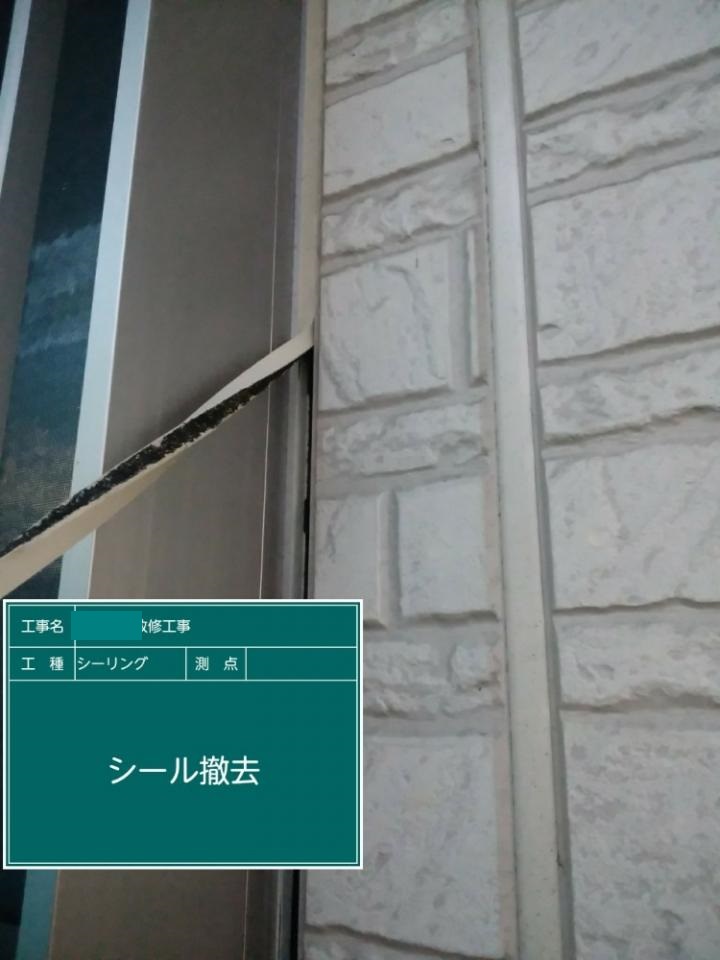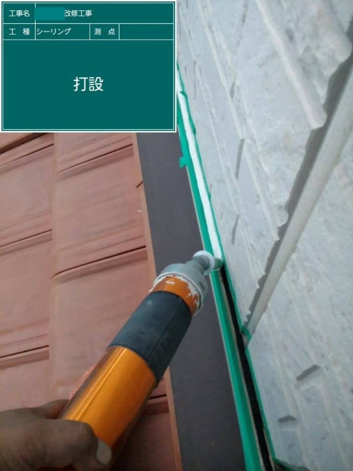 外壁全体に経年劣化による色褪せ、チョーキング現象が見られました。水をかける検査では外壁が水を弾かない状態が確認できました。また外壁同様コーキングも経年劣化による痩せ、割れがありました。