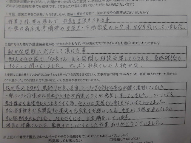 Q:他にも似たような業者があったにもかかわらず、何が決め手でプロタイムズをお選びいただいたのですか?