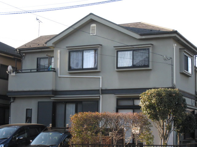 外壁の素材がモルタルということもありクラック(ヒビ割れ)が目立ち始めていました。 クラックはコーキングで補修後にアステックEC2000-DG-IRという伸縮率660%の防水性の 高い塗料(遮熱効果も有)で、屋根はカビ・苔が多く繁殖していましたので塗装前に全面に防カビ剤を塗布致しました。