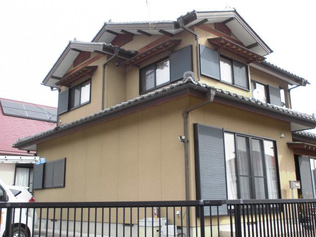 外壁全体に色褪せが見られ、陽の当たらない外壁には苔の繁殖、湿気の多い場所にはシミも見られました。木部と雨戸の色褪せ。またコーキング箇所は経年劣化による割れが見られました。