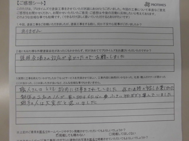 Q:他にも似たような業者があったにもかかわらず、何が決め手でプロタイムズをお選びいただいたのですか?