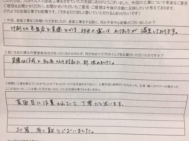 Q:他にも似たような業者があったにもかかわらず、何が決め手でプロタイムズをお選びいただいたのですか?
