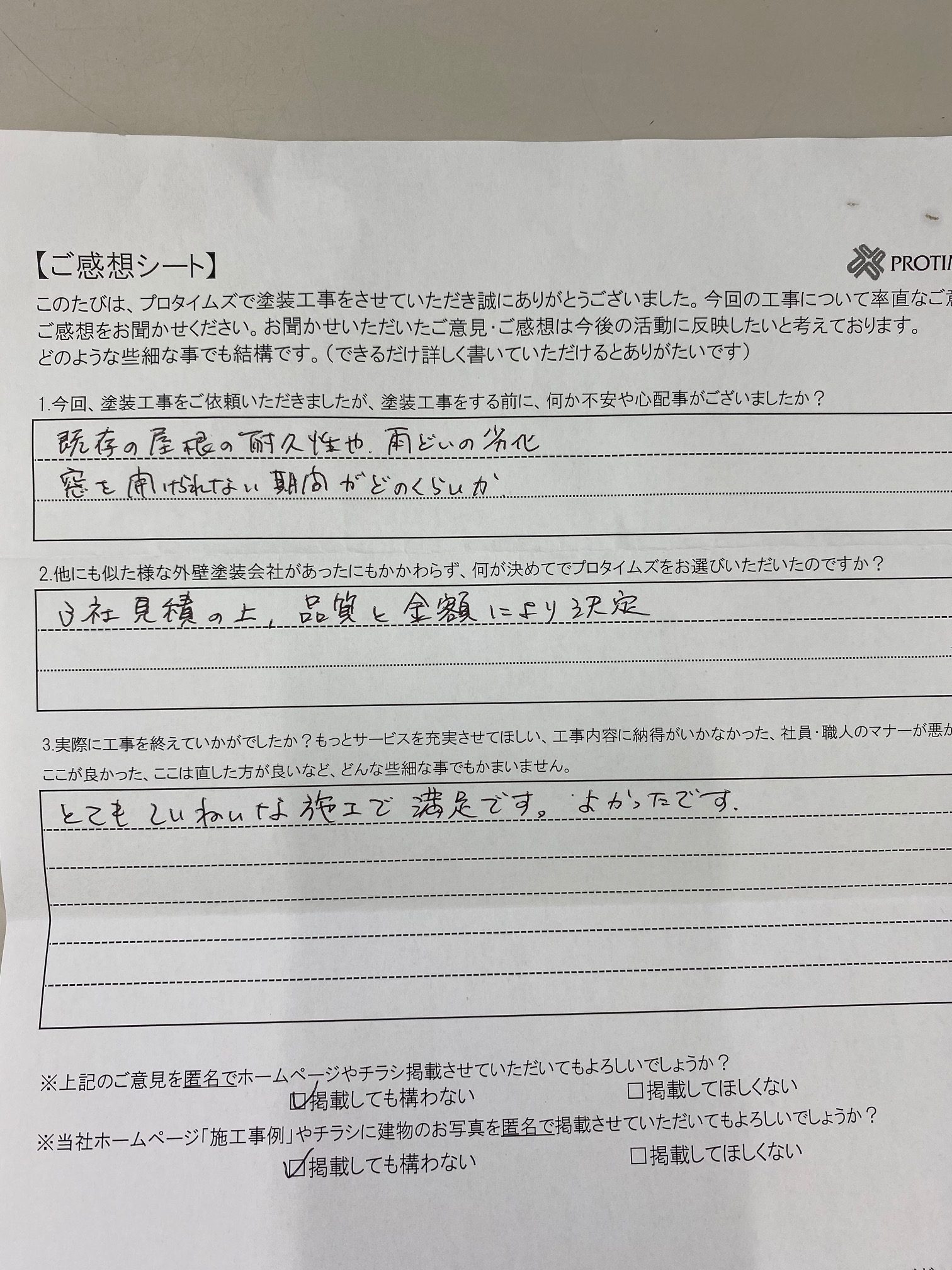 Q:他にも似たような業者があったにもかかわらず、何が決め手でプロタイムズをお選びいただいたのですか?