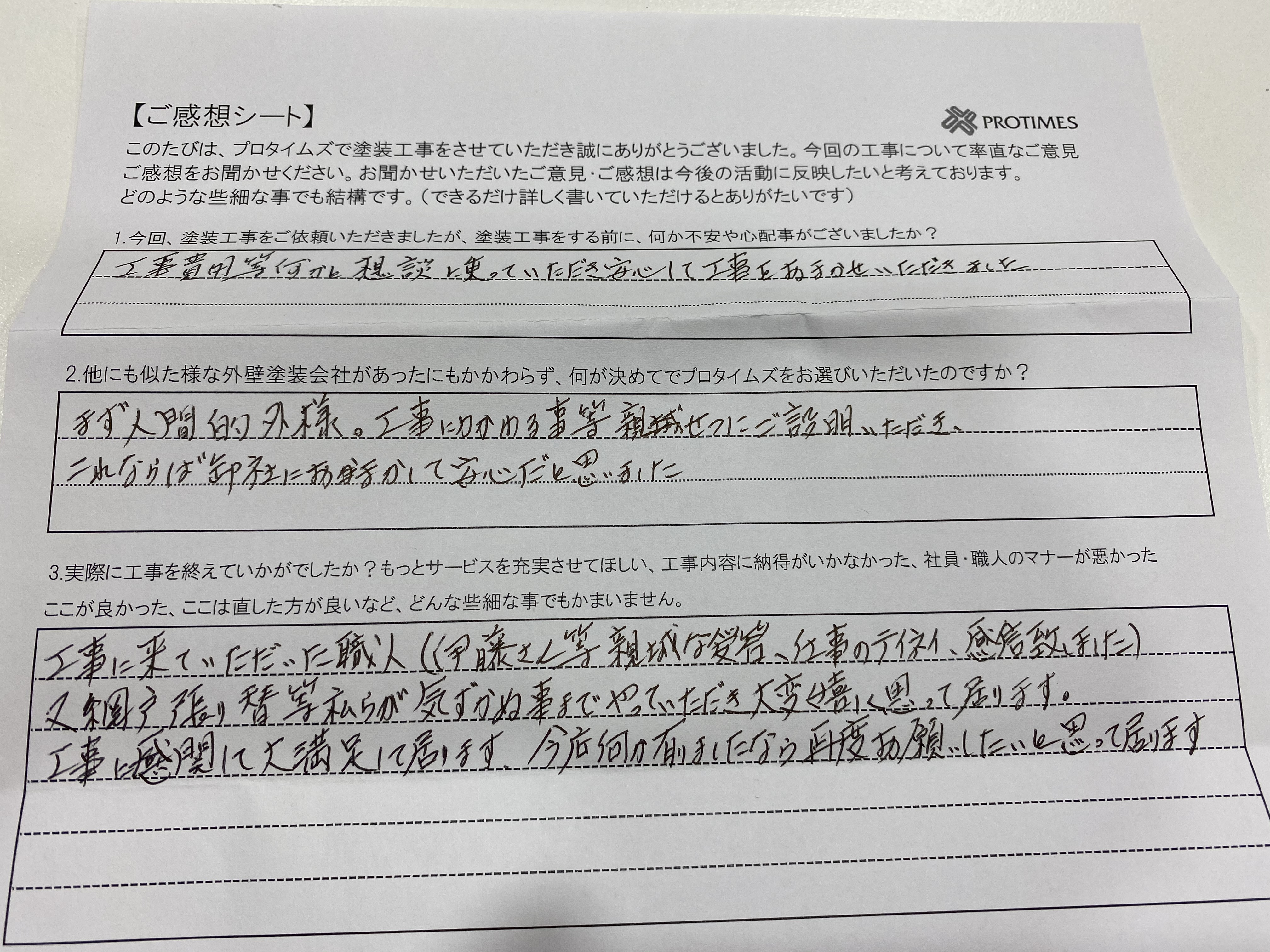 Q:他にも似たような業者があったにもかかわらず、何が決め手でプロタイムズをお選びいただいたのですか?