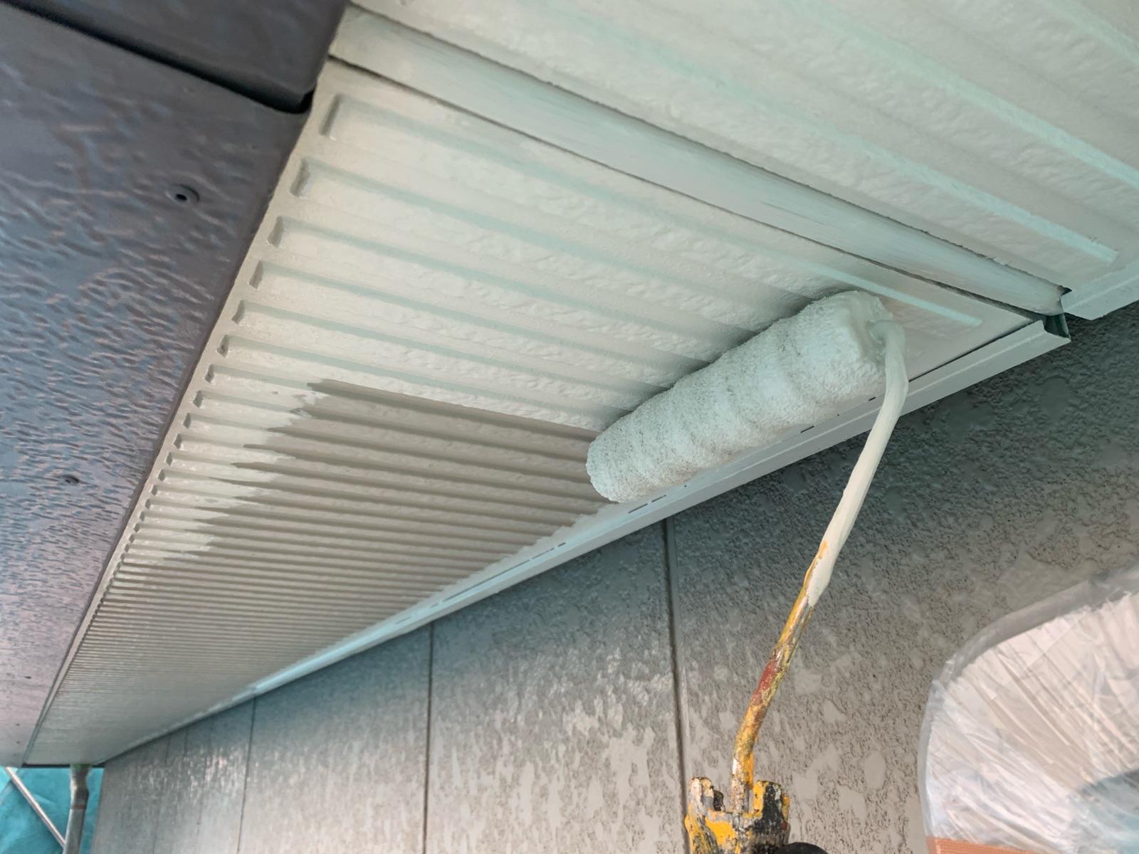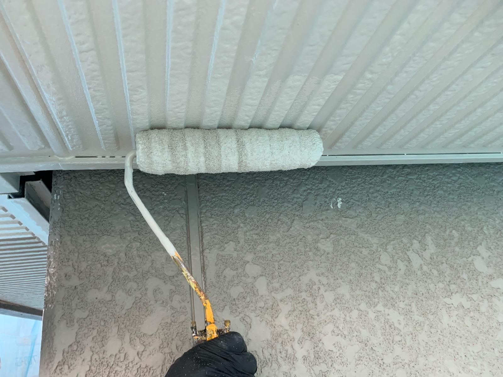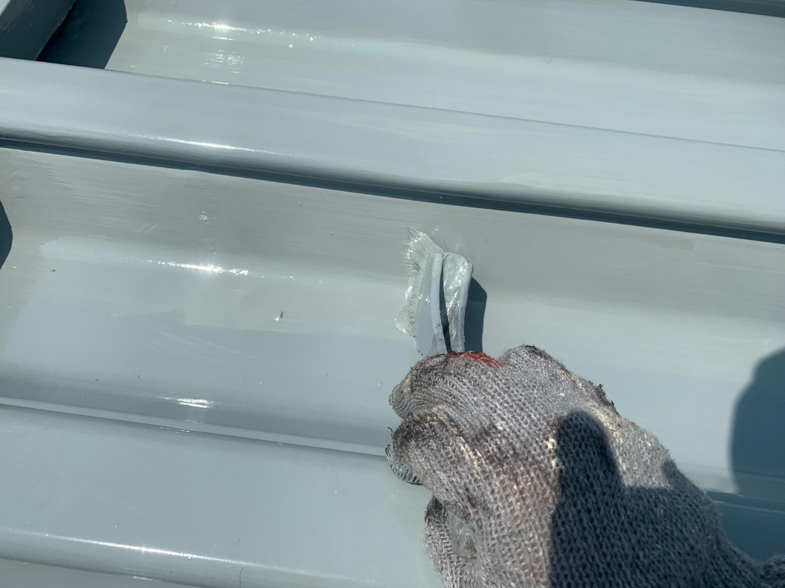 以前塗装工事をさせて頂いたお客様からのご紹介で、現場調査、お見積りをさせて頂きました。金属屋根、金属サイディングでしたので、高圧洗浄した後、各所ケレン(研磨)作業を行い、塗料が密着しやすい下地にした後、錆止めを塗布。上塗り材を2回塗布しました。また、建物が金属製でしたので熱伝導率を考慮した上、屋根外壁ともに遮熱塗料を使用しました。屋根の色は9110クレタグレー。濃い色よりも熱の反射率が高くなりより一層の遮熱機能が期待できます。外壁は少しグレーがかったベージュ系の8112チーノを使用。破風板や幕板を少し濃い目の8077ヤララブラウンでアクセントにし、全体を引き締めました。品があり、落ち着きのある外観に仕上がりました。