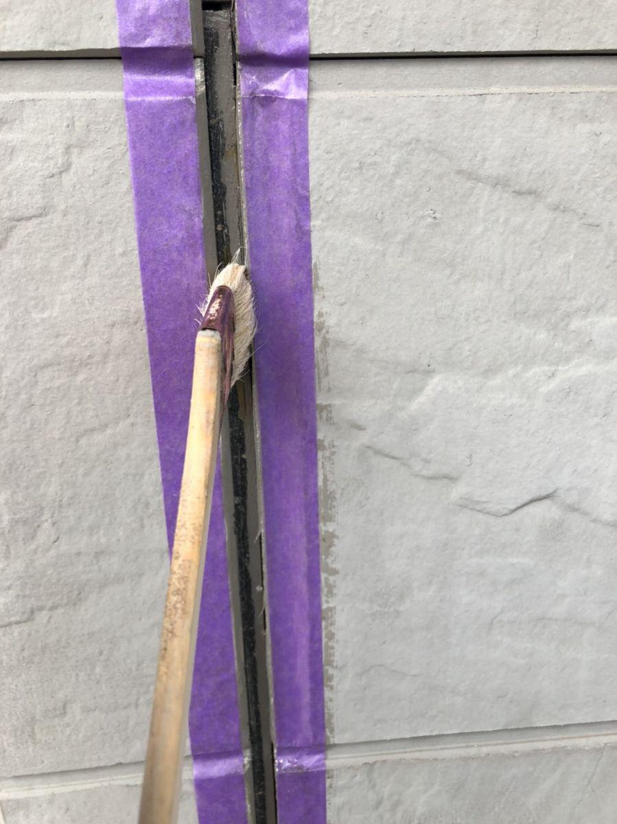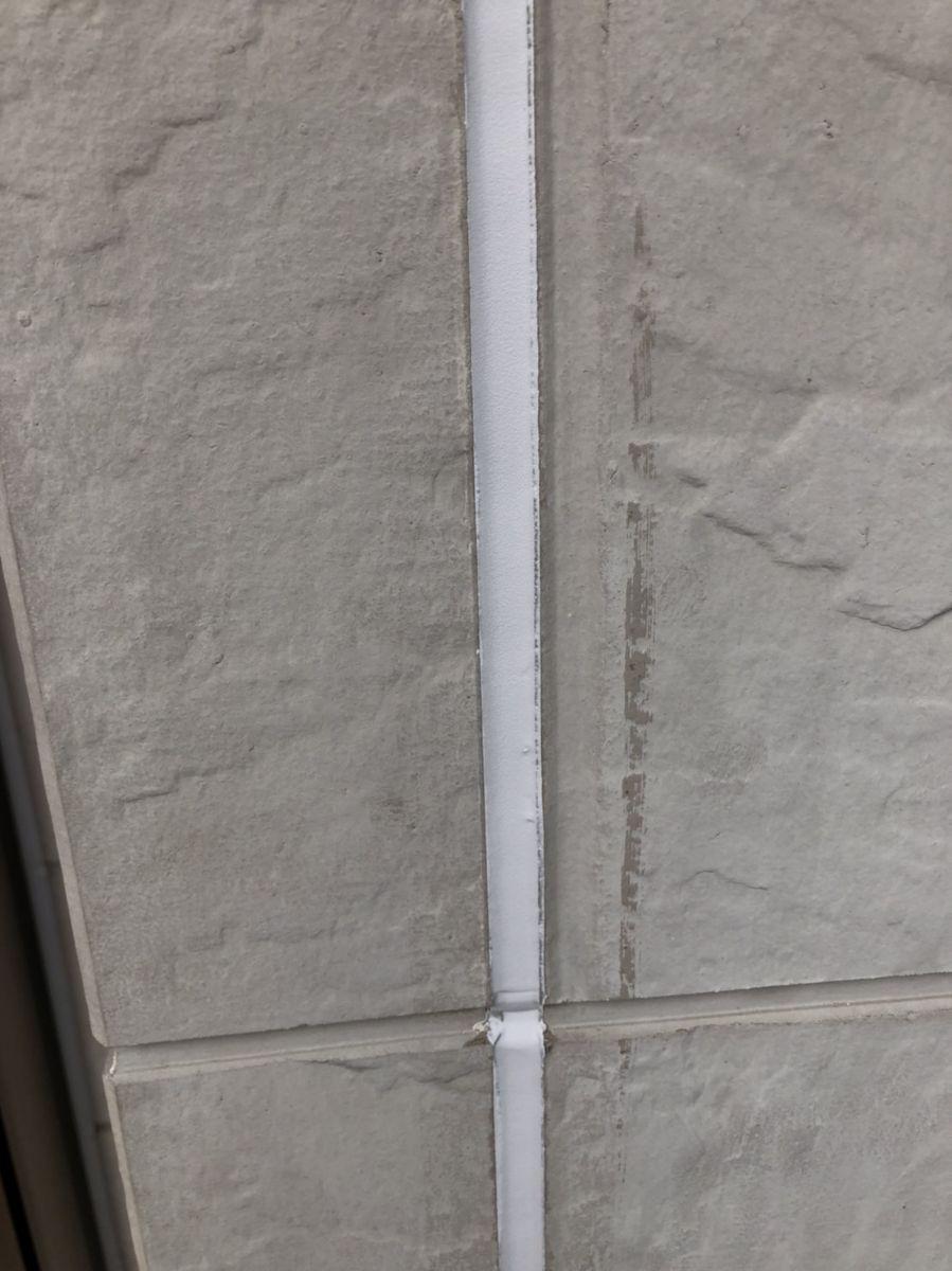 窯業サイディング外壁の特徴でもある目地に使用されているコーキングの劣化が、各所で見られたためすべてのコーキングを撤去し、新規に打ち替えました。外壁はアステックペイントのプラチナリファイン2000MFを使用。無機成分が配合され親水性に富んだ塗膜を形成し、汚れが付着してもその汚れを雨水が洗い流し、美しさを長期間保持する塗料です。しかも遮熱機能を兼ね備えた万能塗料。色は8081カラ―ボンドバーチグレー。暗くならず明るすぎず、少し赤みが入ったグレーです。品があり落ち着いた外観に仕上がり、お施主さんにも大変気に入っていただけました。