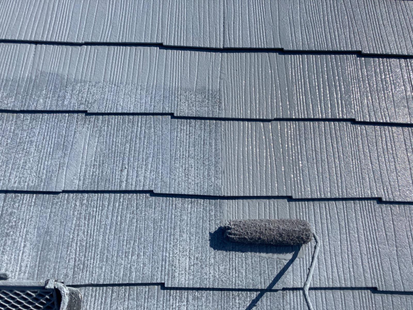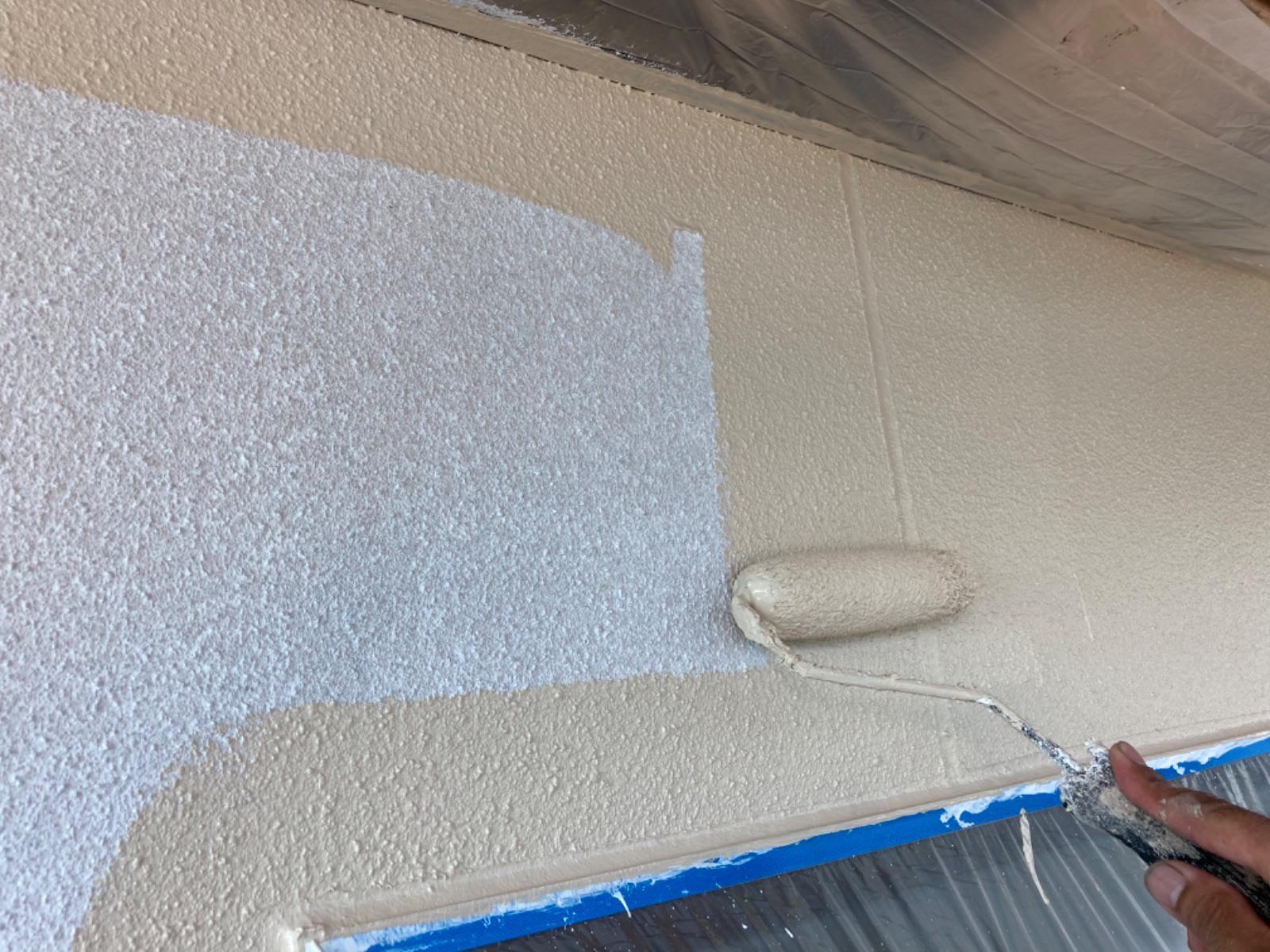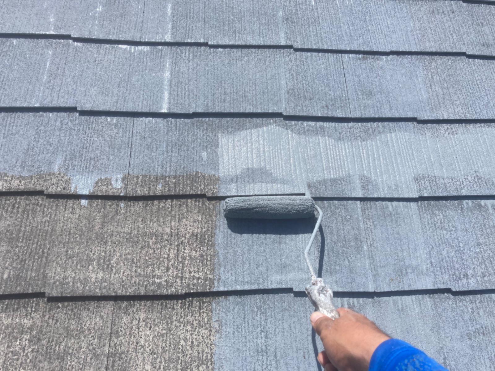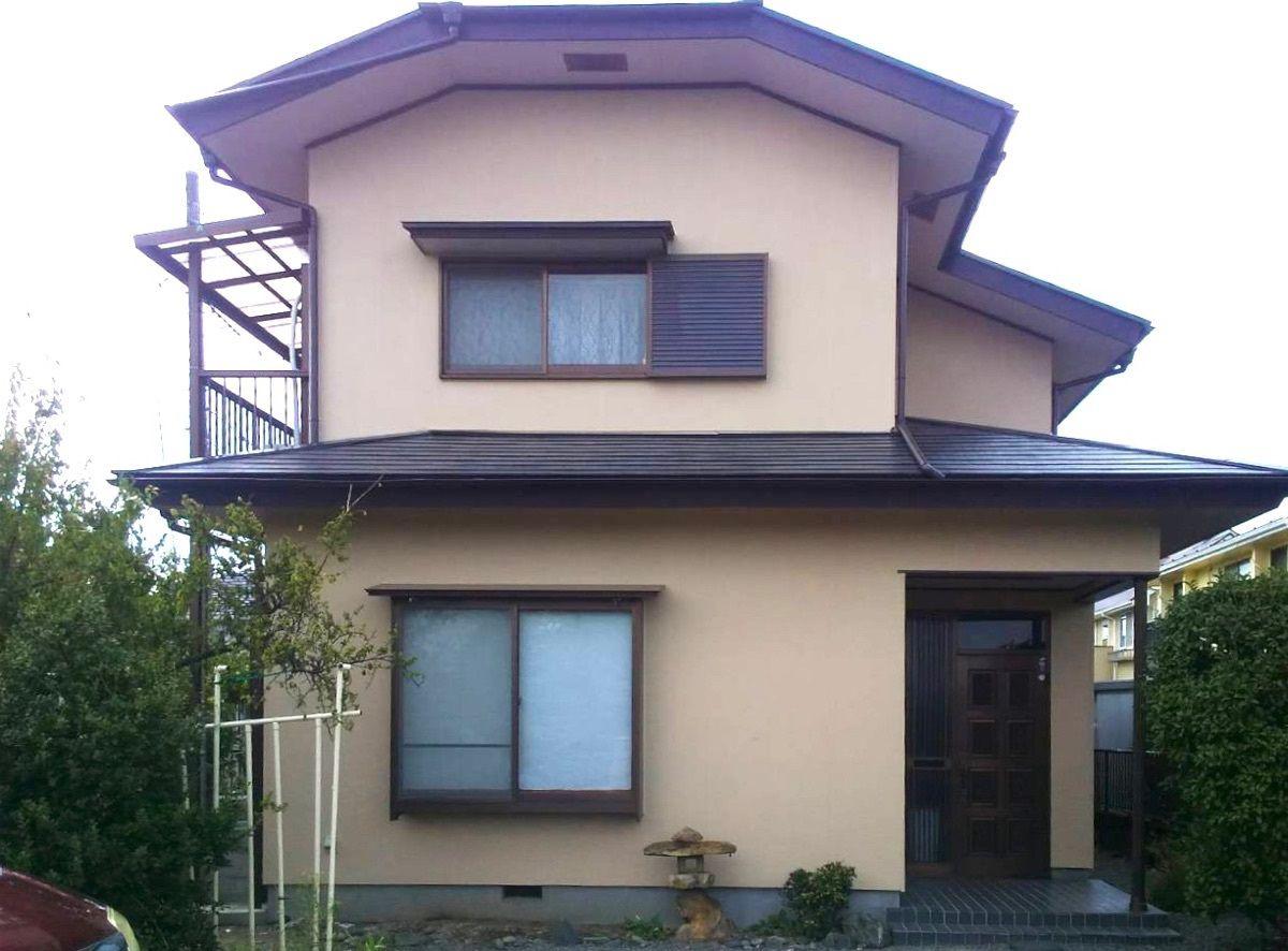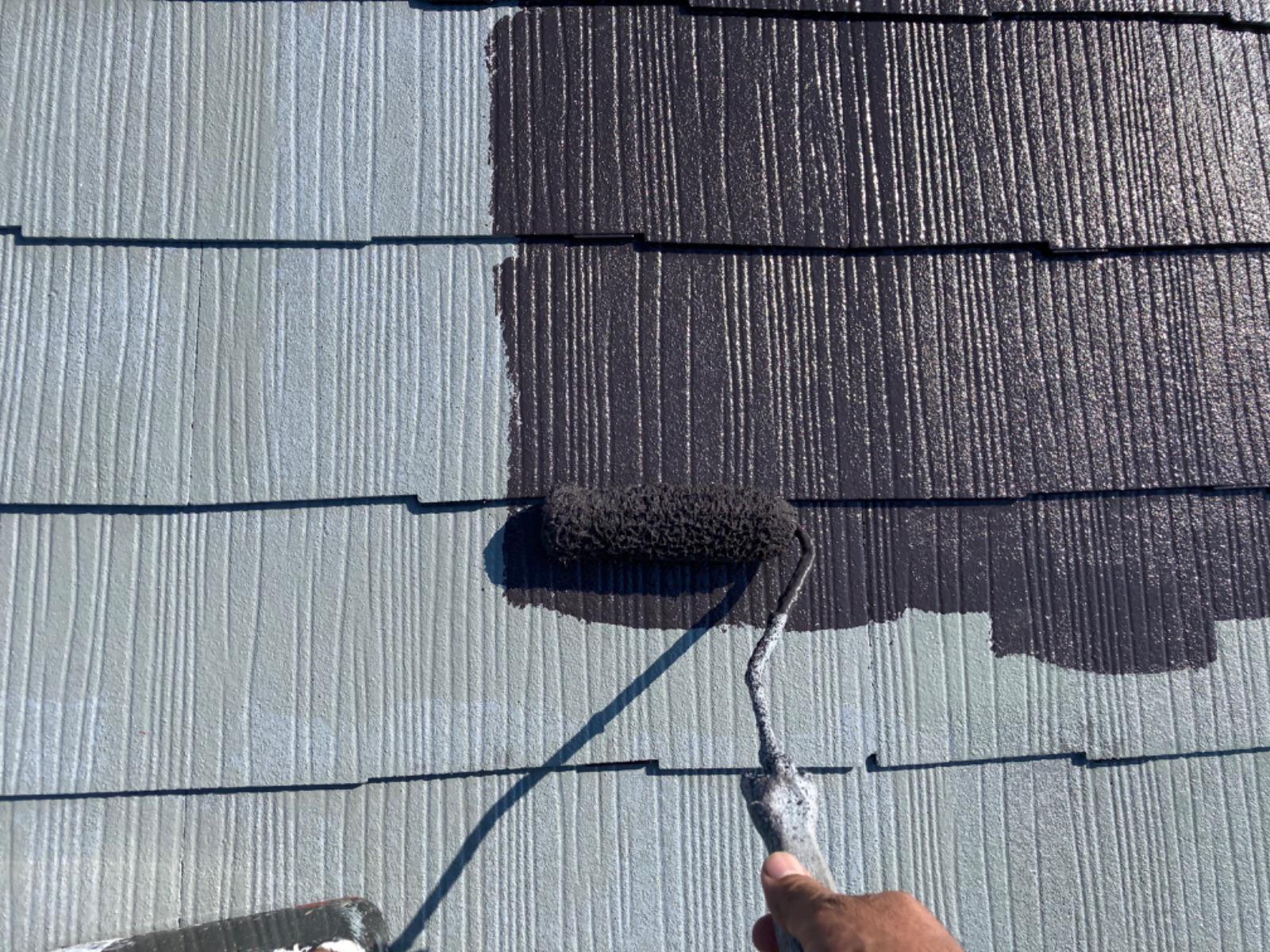 屋根は、高圧洗浄によりカビ・コケを入念に落とし作業に入りました。劣化が進んだ状態でしたので塗料の吸い込みが激しく、下塗り材を1回塗布しただけでは塗膜に厚みが付かない為、下塗り材を2回塗布し、上塗り材を2回塗布、計4回塗布しました。また上塗り材を塗布する前には毛細管現象による雨漏れを防ぐ為、縁切り部材(タスペーサー)を挿入し2㎜程度の隙間を確保しました。軒天は一部張替、外壁はコーキングを打ち替え、塗装しました。屋根の塗料はアステックペイントのスーパーシャネツサーモF。遮熱機能を兼ね備えたフッ素塗料で色はキャビアブラウンを使用しました。外壁の塗料は長きにわたって美しさを保ち遮熱機能も兼ね備えた超低汚染リファイン1000Si。色は人気のミッドビスケットを使用。落ち着いた雰囲気で暖かみのある明るい外観に仕上がりました。