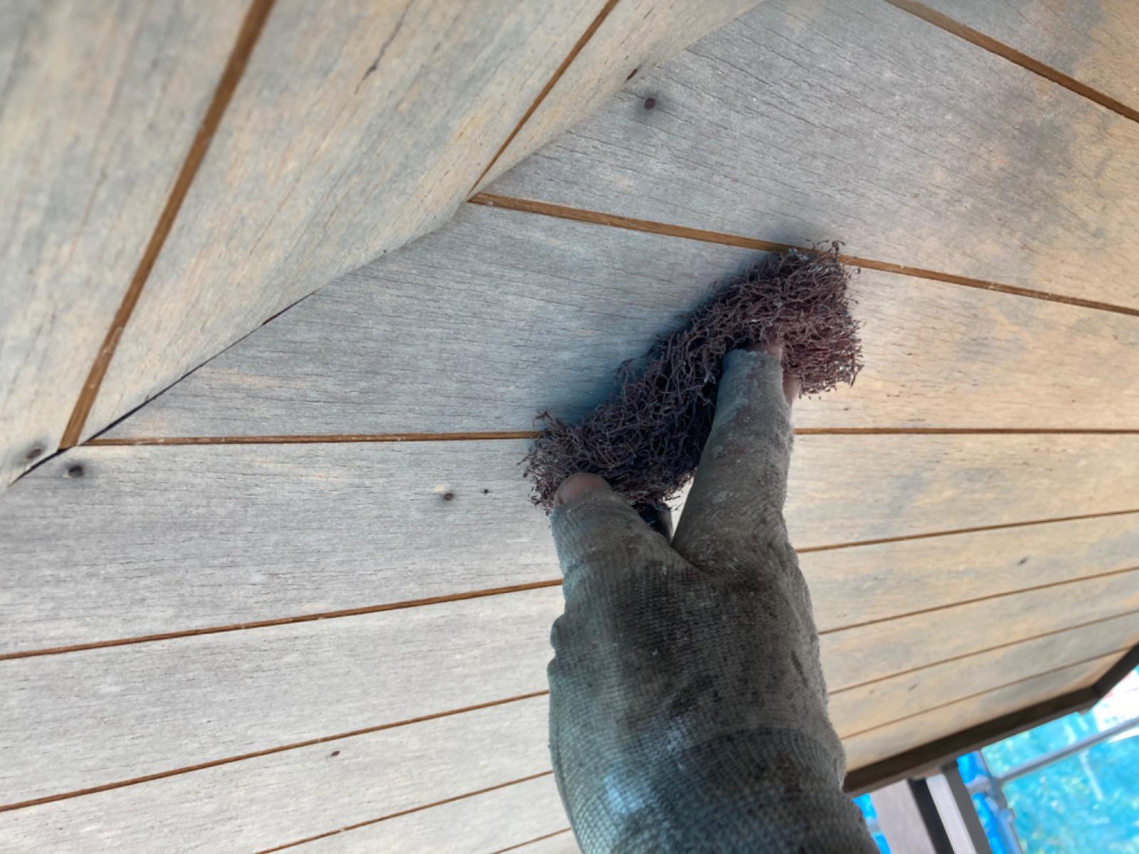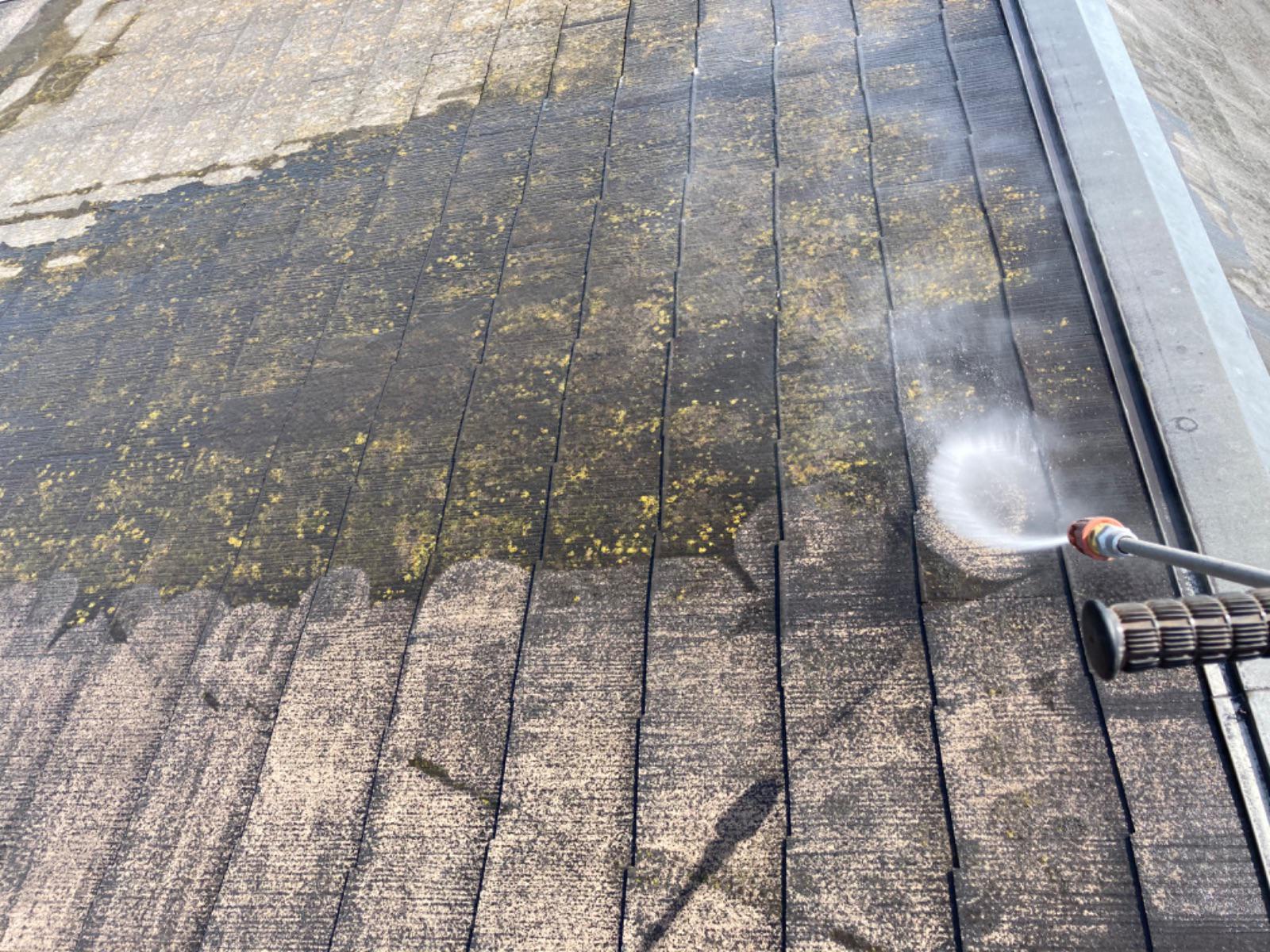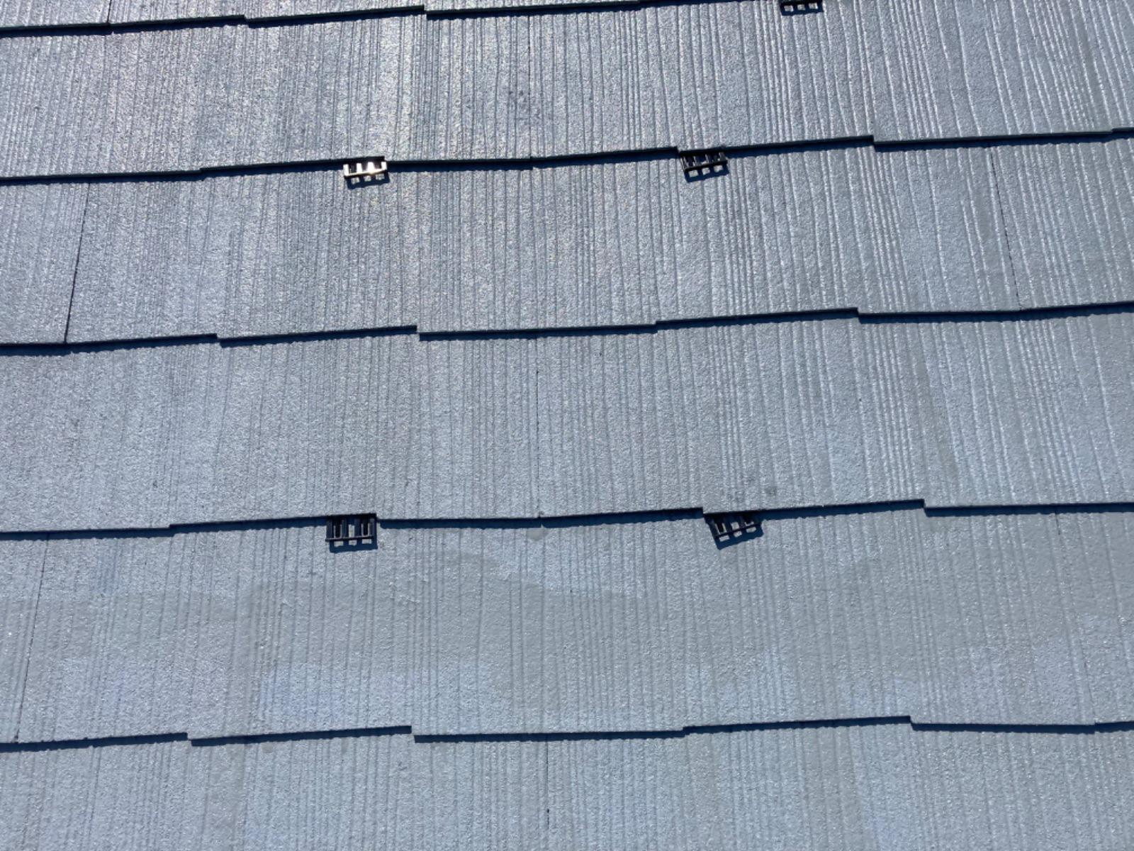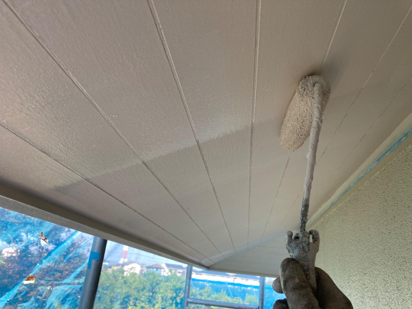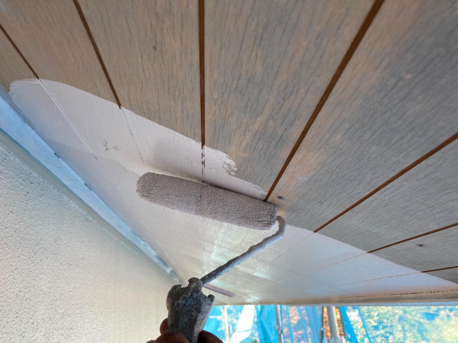 屋根は、高圧洗浄によりカビ・コケを入念に落とし作業に入りました。劣化が進んだ状態でしたので塗料の吸い込みが激しく、下塗り材を1回塗布しただけでは塗膜に厚みが付かない為、下塗り材を2回塗布し、上塗り材を2回塗布、計4回塗布しました。また上塗り材を塗布する前には毛細管現象による雨漏れを防ぐ為、縁切り部材(タスペーサー)を挿入し2㎜程度の隙間を確保しました。軒天は一部張替、外壁はコーキングを打ち替え、塗装しました。屋根の塗料はアステックペイントのスーパーシャネツサーモF。遮熱機能を兼ね備えたフッ素塗料で色はキャビアブラウンを使用しました。外壁の塗料は長きにわたって美しさを保ち遮熱機能も兼ね備えた超低汚染リファイン1000Si。色は人気のミッドビスケットを使用。落ち着いた雰囲気で暖かみのある明るい外観に仕上がりました。