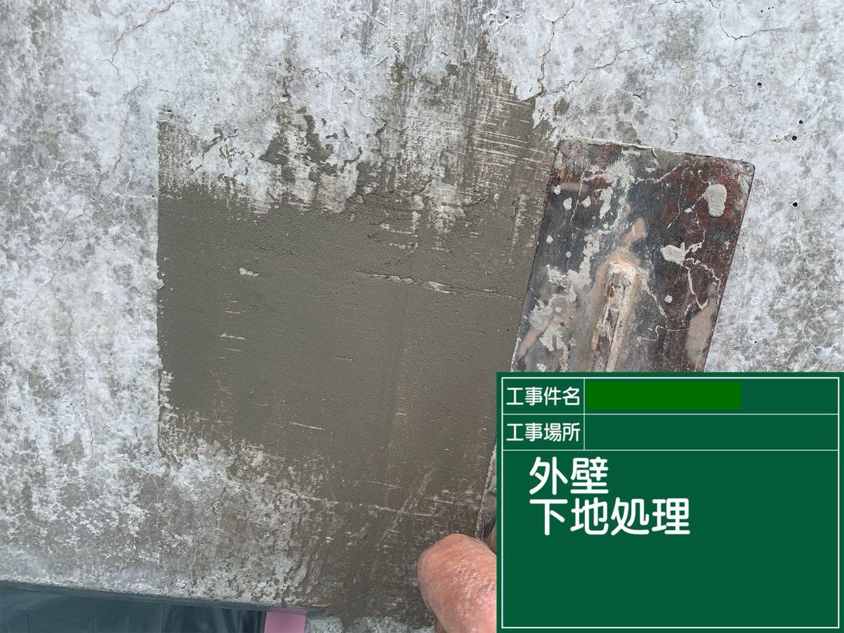 コーキングは打替え、ヘアークラックなどの補修箇所は補修をしてからコンクリート打放し保護工法にてセラミクリートを使用。そのあとクリヤーを2回塗布しました。しっかり塗膜で保護されるよう施工致しました。