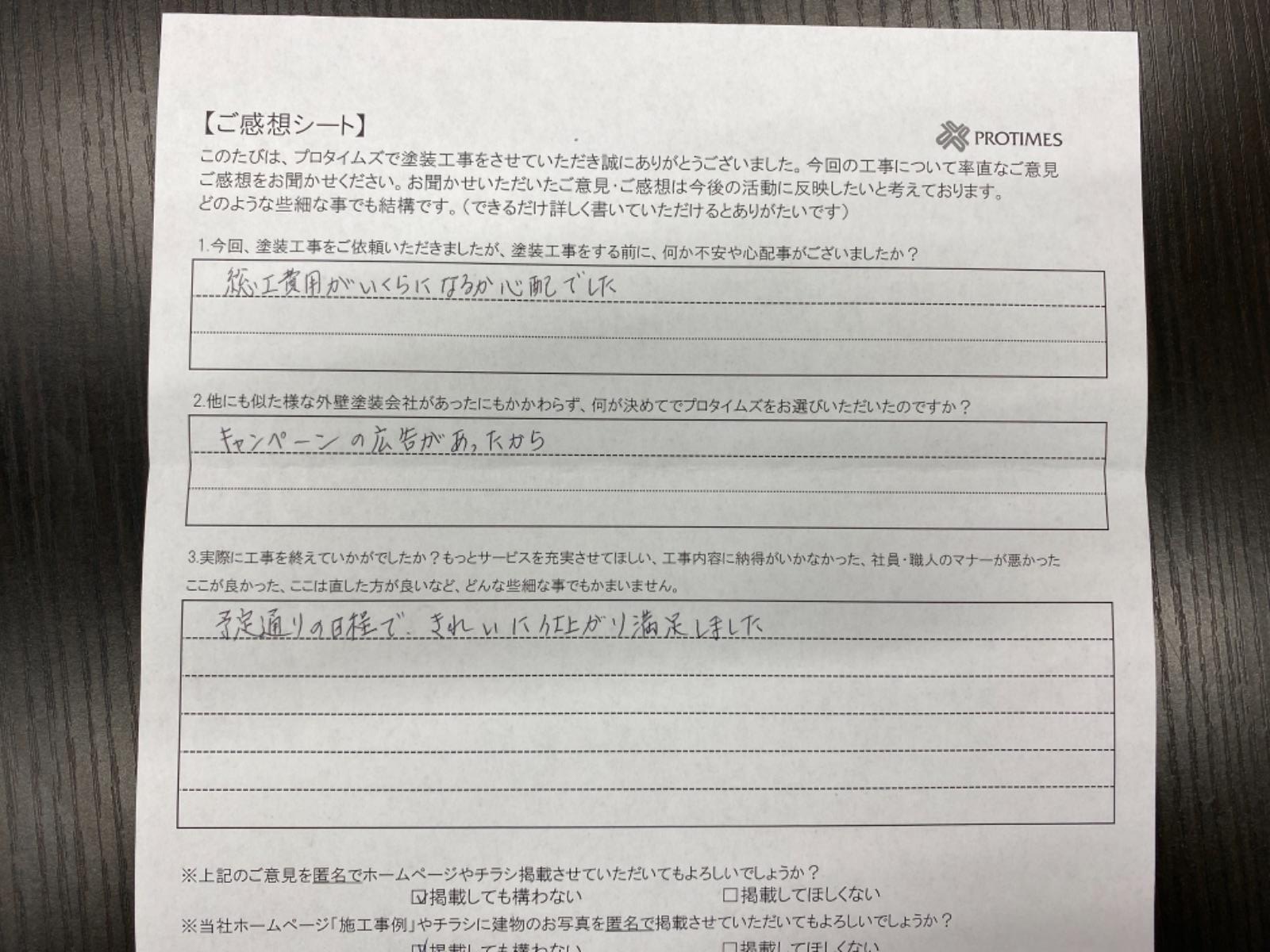 Q:他にも似たような業者があったにもかかわらず、何が決め手でプロタイムズをお選びいただいたのですか?