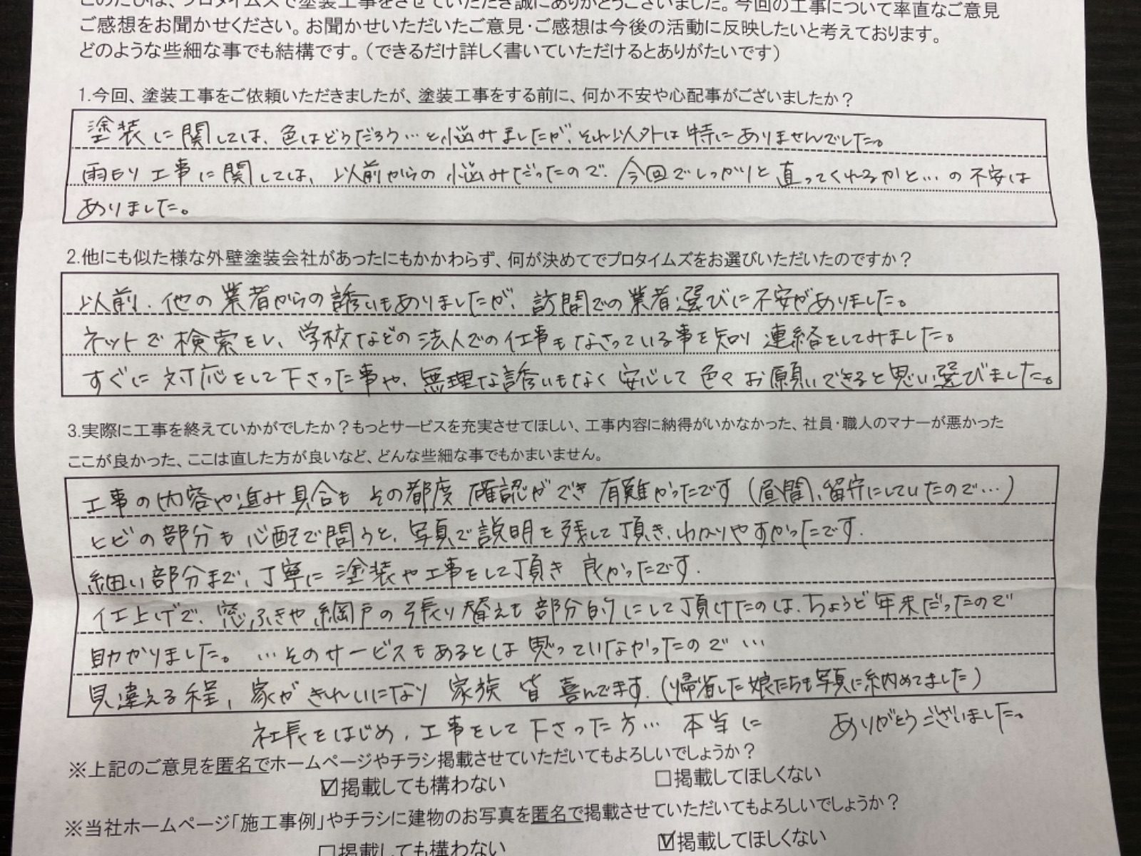 Q:他にも似たような業者があったにもかかわらず、何が決め手でプロタイムズをお選びいただいたのですか?