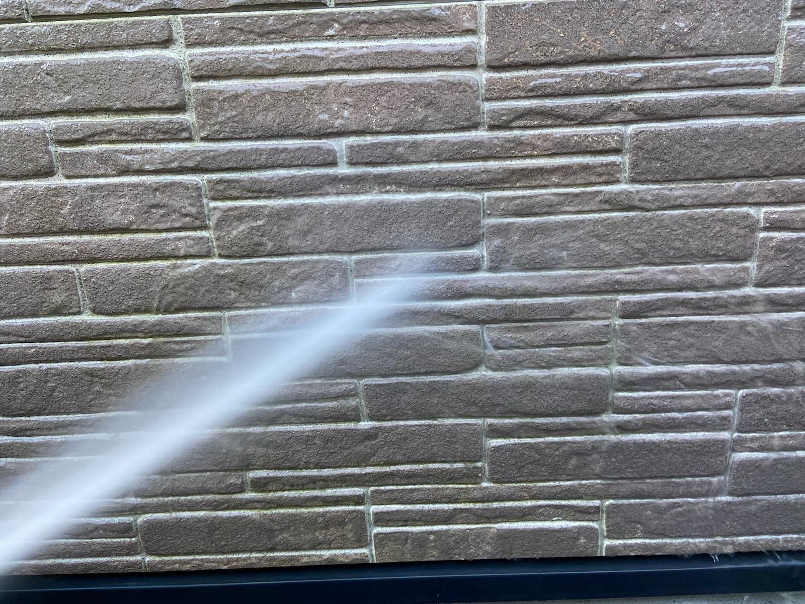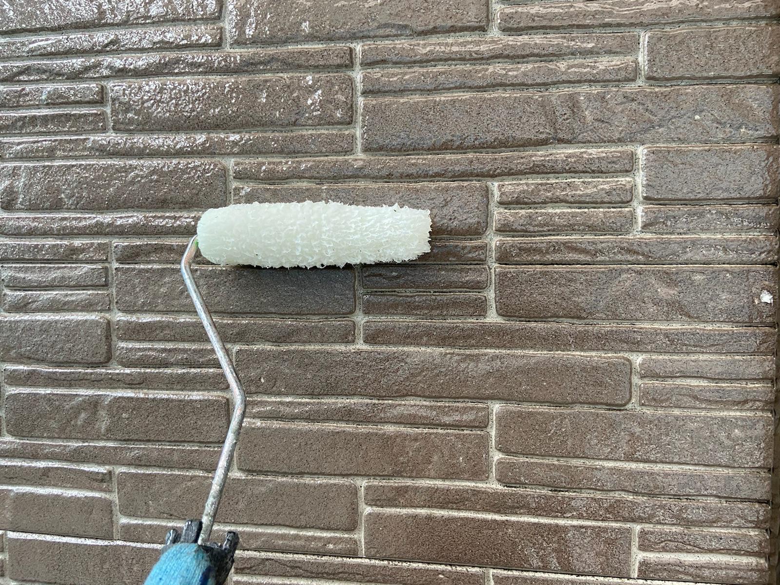 外壁は多彩模様の窯業系サイディング。築15年目。多彩模様を生かし、色で塗りつぶさずに透明なクリヤーを塗装しました。塗料はKFケミカルのセミフロンスーパーマイルドを使用。セミフロンスーパーシリーズは、最も耐候性に優れるとされる無機成分とフッ素が融合された塗料で対候性に優れたハイグレードな塗料です。クリヤー塗料を塗ったことで新築時のように生まれ変わりました。