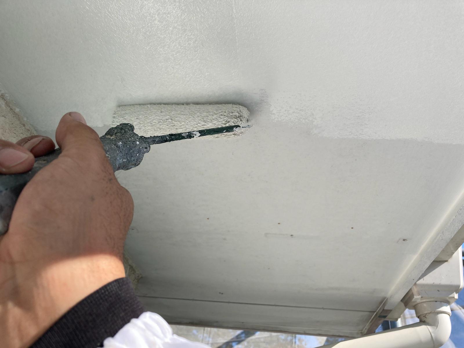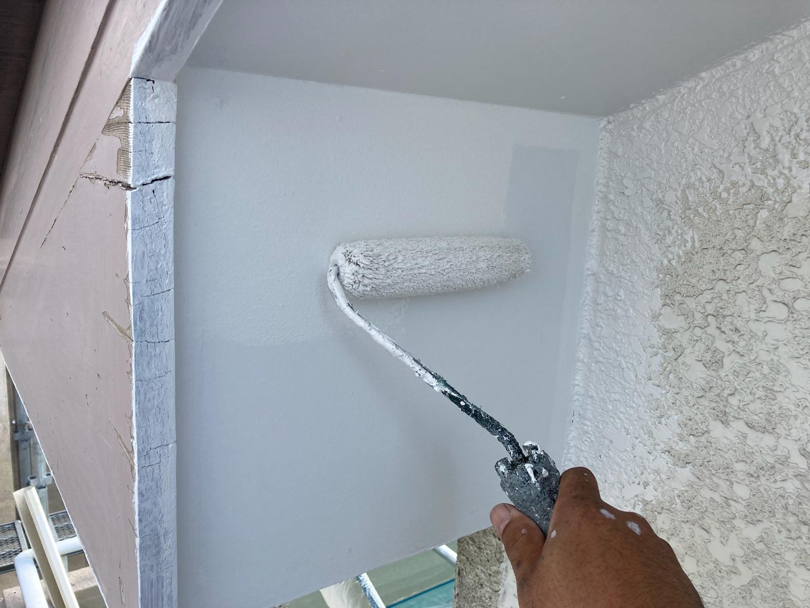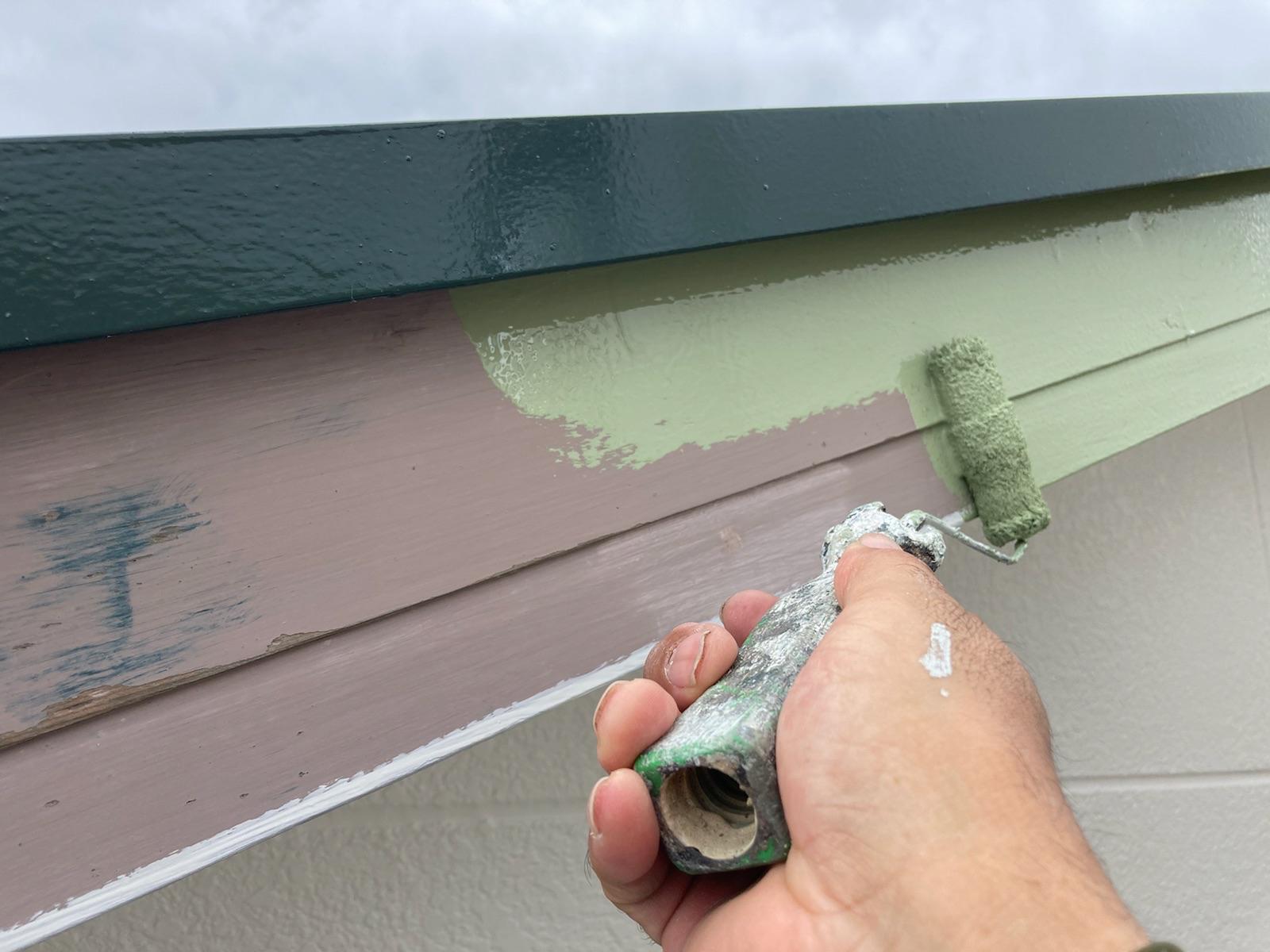 屋根は入念に洗浄し、カビコケを洗い流しました。瓦と瓦の間からの水の侵入を防ぐ為、タスペーサー(縁切り部材)を設置後、上塗り材を塗装しました。外壁はコーキングを増し打ちし、塗装しました。ベランダ外壁は一部解体。補修工事をした後、新たに笠木と手摺を取付ました。塗料は屋根にアステックペイントの遮熱塗料、外壁も同じくアステックペイントのリファインシリーズを使用。親水性に優れ(水と馴染みやすい性質)塗膜に汚れが付着しても雨水が塗膜と汚れの間に入り込み汚れが落ちる為、長く塗りたての美しさを保つことが期待できます。(白っぽい外壁には最適)カラーはホワイトとグリーン系でまとめました。屋根は綺麗なエバーグリーン。外壁全体はクールホワイトで、ベランダ外側外壁と玄関廻りにオパールグリーン。雨樋・破風板はフレンチグリーンを使用しました。自然と調和した、爽やかで明るい外観に仕上がりました。