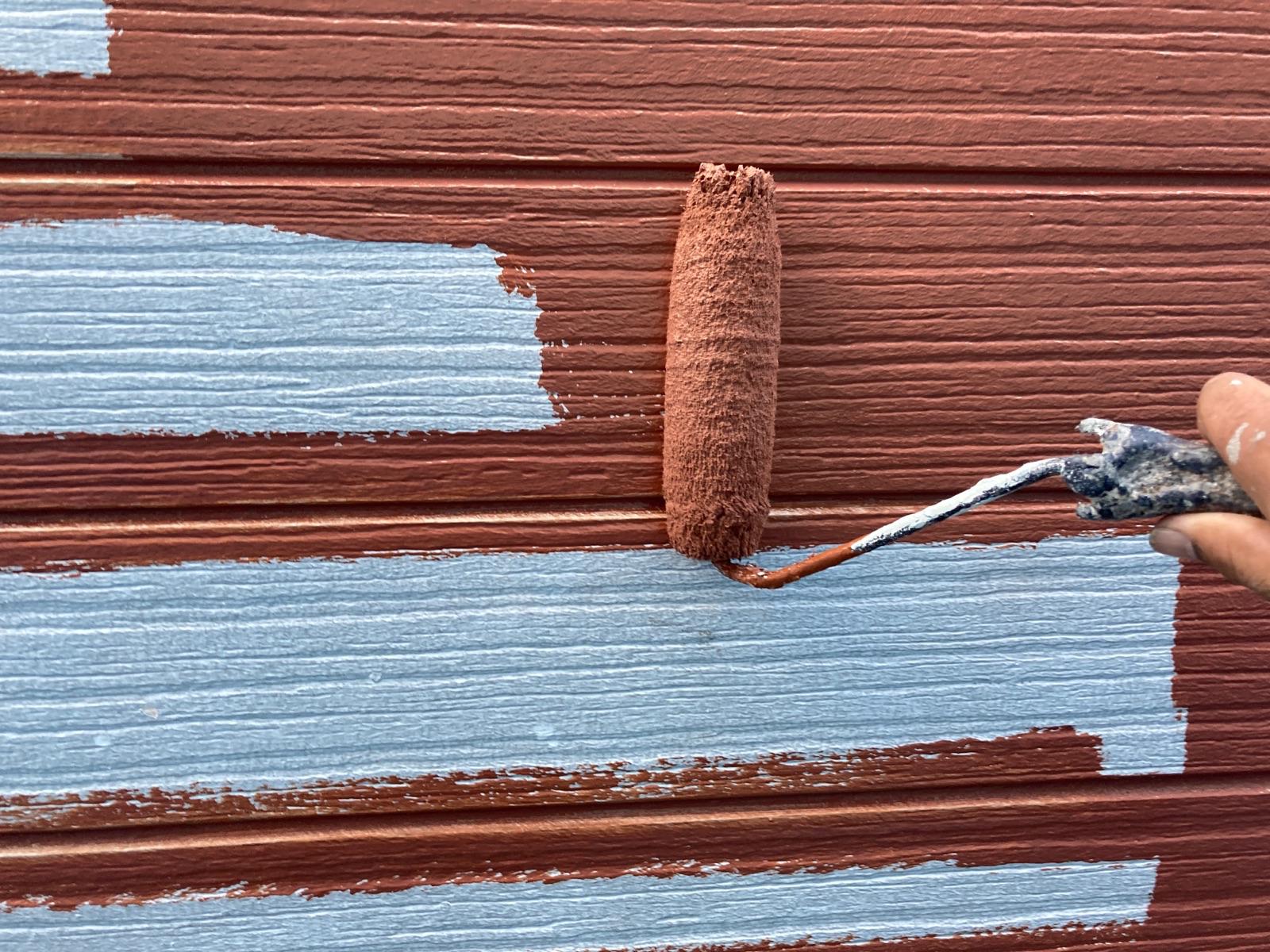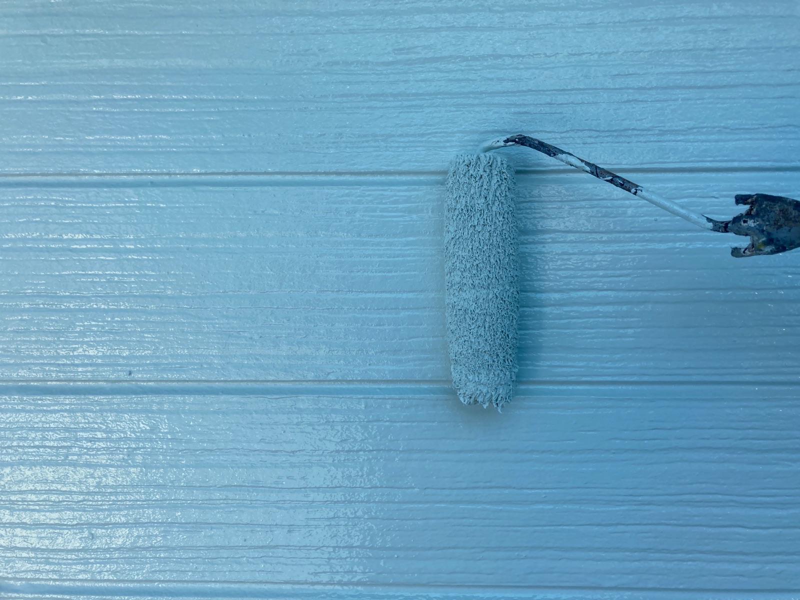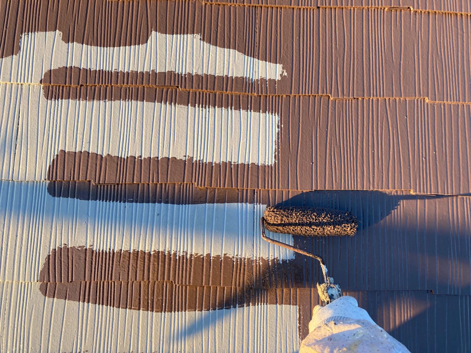 経年劣化により塗料の吸い込みが見られましたので下塗り材を2回塗布してから、屋根は縁切り部材タスペーサーを挿入し、上塗り材を2回塗布しました。外壁はコーキキングを打ち替え塗装しました。塗料は屋根、外壁ともアステックペイントの遮熱機能を兼ね備えた塗料を使用。スレートや窯業系サイディングは蓄熱性が高いため、遮熱塗料を塗布する事により夏の室内温度上昇を軽減する事が期待できます。色は屋根がラセットブラウン。外壁はベランダ部だけ色を変えて2色使いにしました。うっすらとグリーンを感じるオパールグリーンを主に、ベランダはテラコッタを。