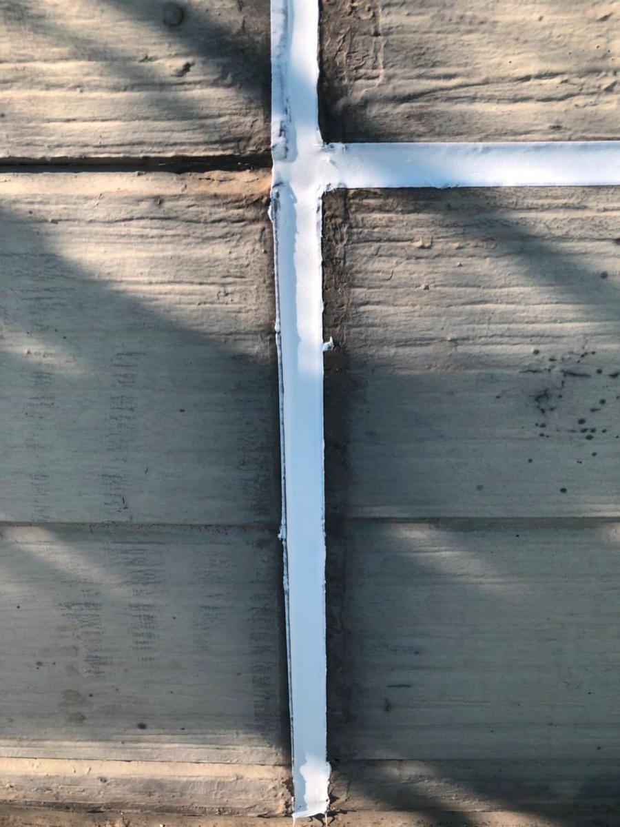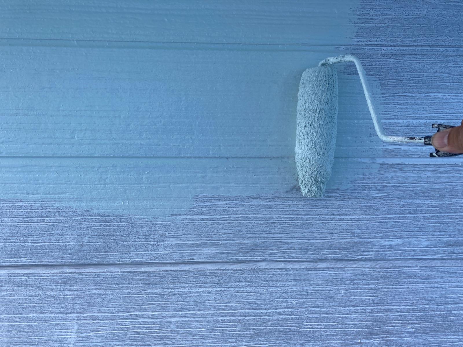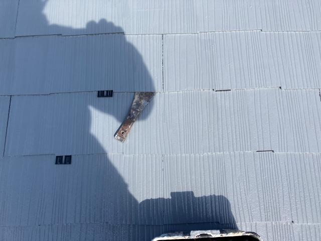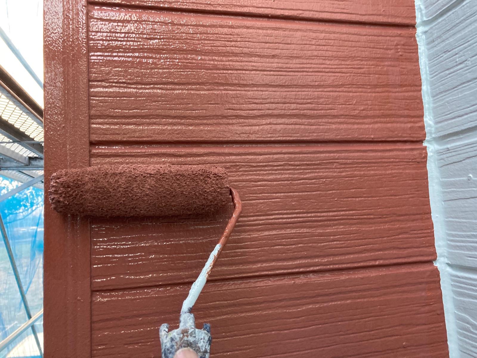 経年劣化により塗料の吸い込みが見られましたので下塗り材を2回塗布してから、屋根は縁切り部材タスペーサーを挿入し、上塗り材を2回塗布しました。外壁はコーキキングを打ち替え塗装しました。塗料は屋根、外壁ともアステックペイントの遮熱機能を兼ね備えた塗料を使用。スレートや窯業系サイディングは蓄熱性が高いため、遮熱塗料を塗布する事により夏の室内温度上昇を軽減する事が期待できます。色は屋根がラセットブラウン。外壁はベランダ部だけ色を変えて2色使いにしました。うっすらとグリーンを感じるオパールグリーンを主に、ベランダはテラコッタを。